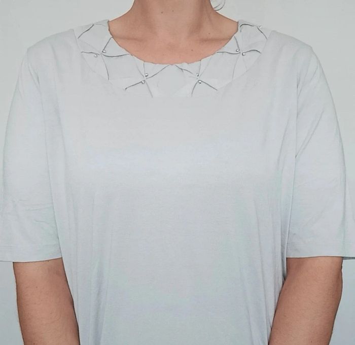 Regardez mes autres articles dans votre taille pour grouper les fdp #poupoupidou46 Haut t-shirt casual chic uni gris, manches courtes, détail col froncé avec bijoux perles argentées , facile a porter et a assortir #haut46 #hautcasualchic46 #tshirt46 #hautcolperle #hautfluide46 #haut4xl #tshirtgrandetaille #hautgrandetaille