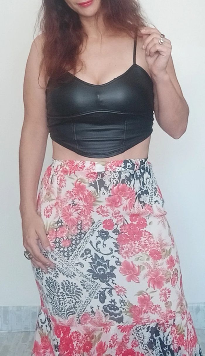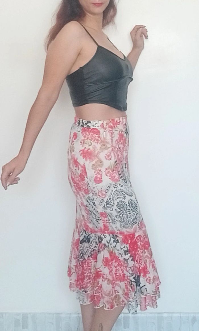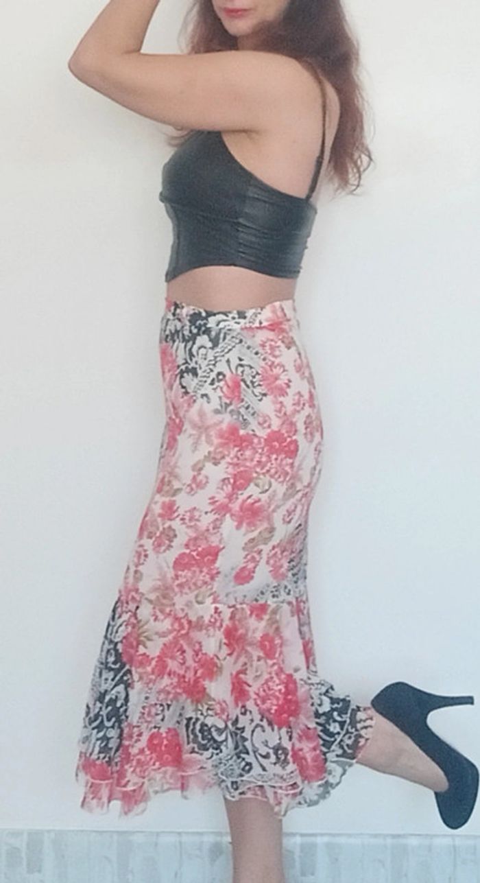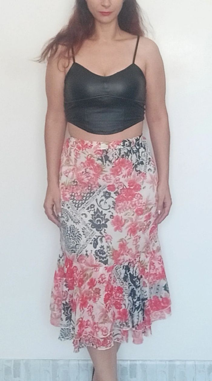 Jupe mi longue tulipe fleurie vintage taille 40 - photo numéro 2