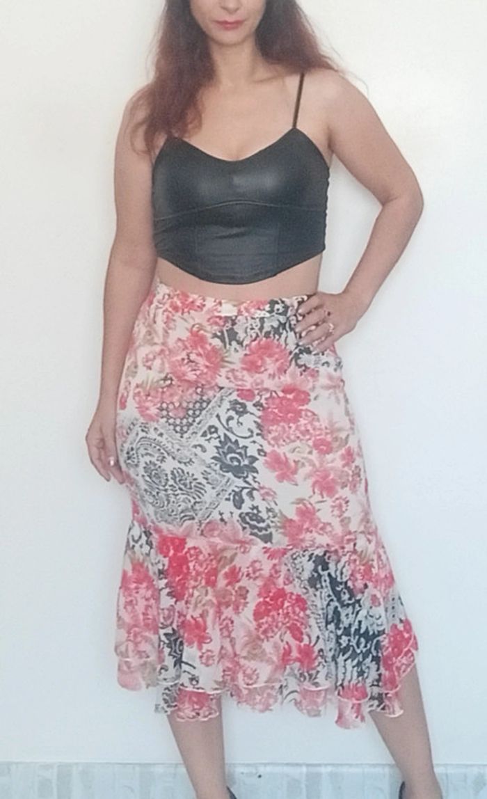 Jupe mi longue tulipe fleurie vintage taille 40 - photo numéro 1