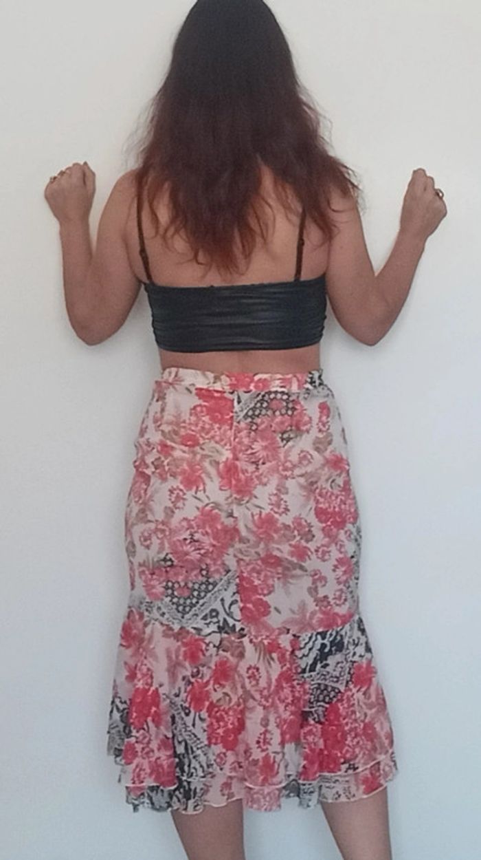 Jupe mi longue tulipe fleurie vintage taille 40 - photo numéro 5