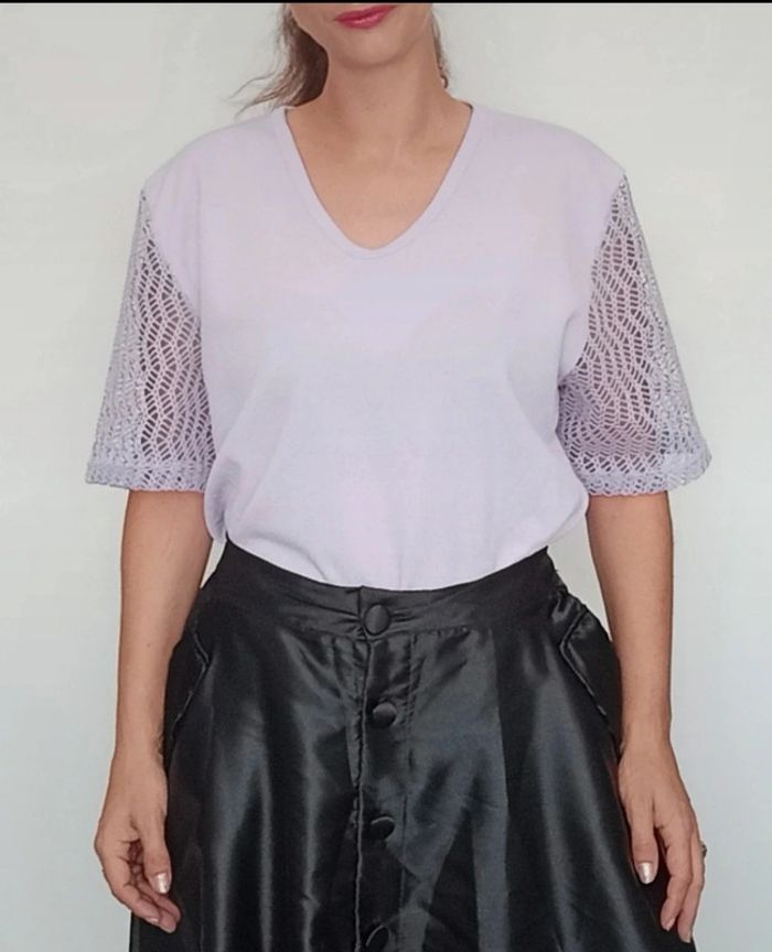 Haut lila manches courtes résilles grande taille - photo numéro 6
