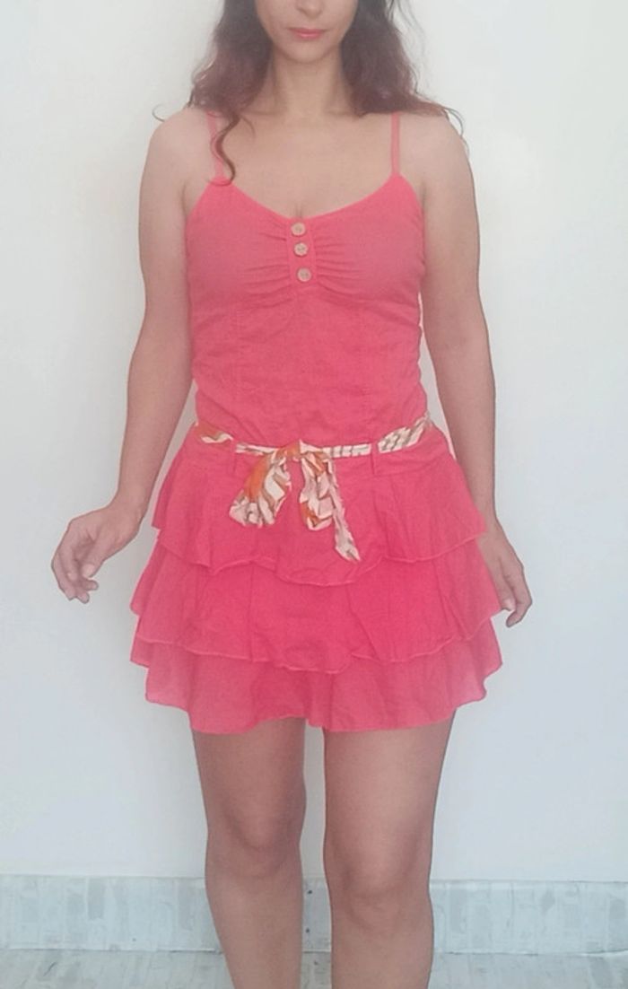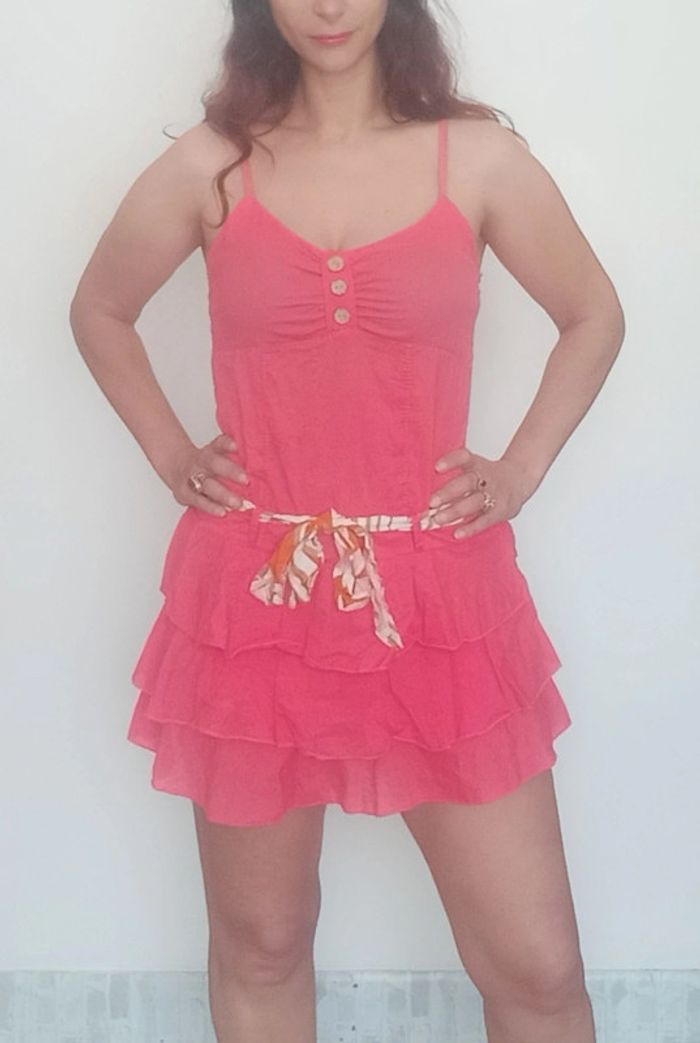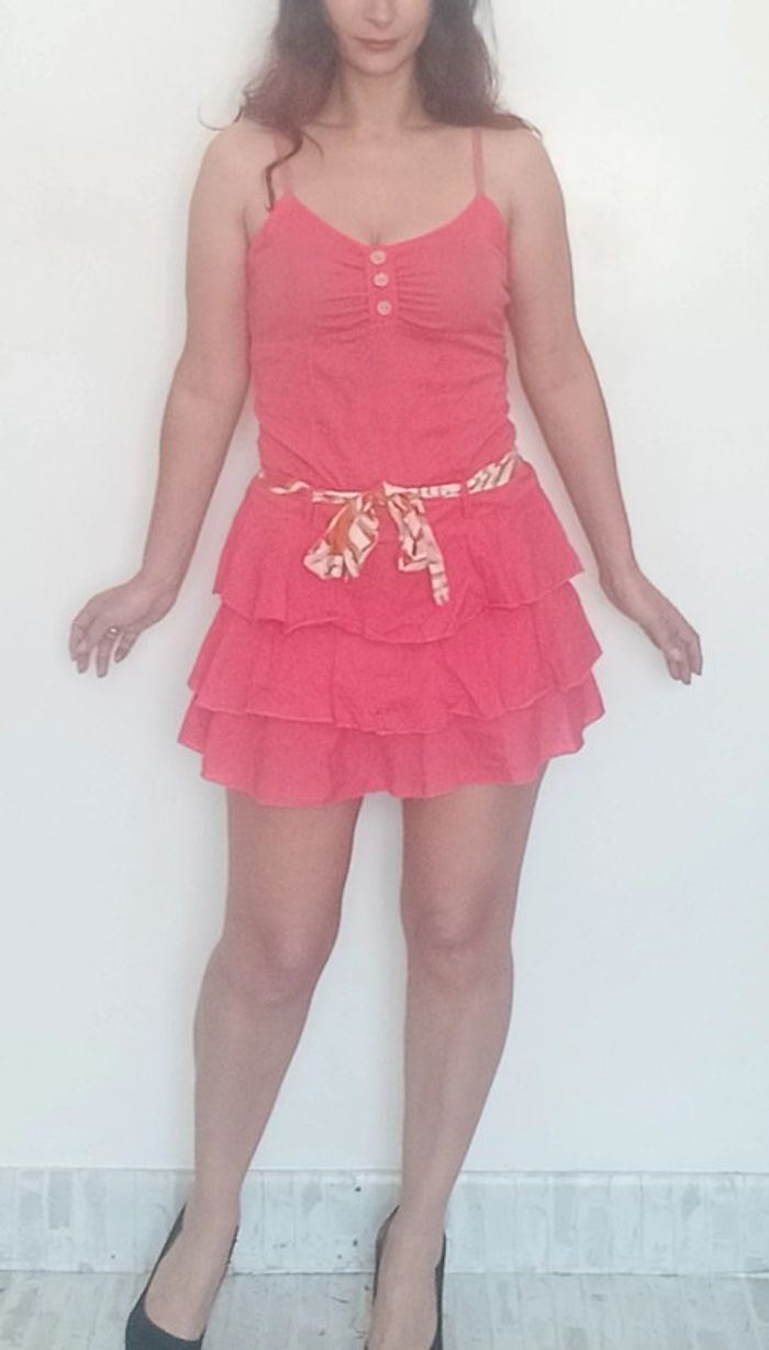 Regardez mes autres articles dans votre taille pour grouper les fdp #poupoupidou36 #poupoupidou38 Robe courte unie corail / fushia avec ceinture a nouer, haut top fines bretelles avec boutons au décolleté dos smocké, bas jupe à volants, féminine et romantique, conviendra aux taille 36 et 38 #robeété3638 #robevolantee36 #robevolantee38 #minirobe36 #minirobe38 #robecorail3638 #robepinup #robefeminine3638 #robe3638 #robefushia36