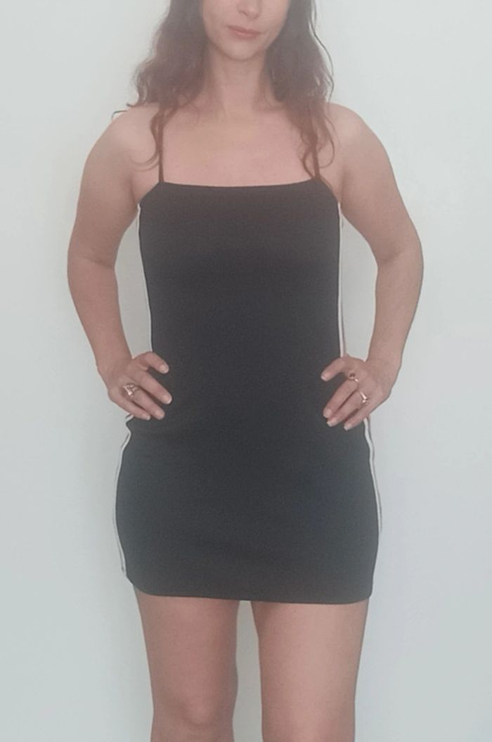 Regardez mes autres articles dans votre taille pour grouper les fdp #poupoupidou38 Mini robe fines bretelles, moulante, noire avec bandes côtés pour un côté sportwear, sexy et basique #minirobe38 #robesexy38 #robeete38 #minirobemoulante38 #robehm38 #robemoulante38 #robebandes #petiterobenoire38