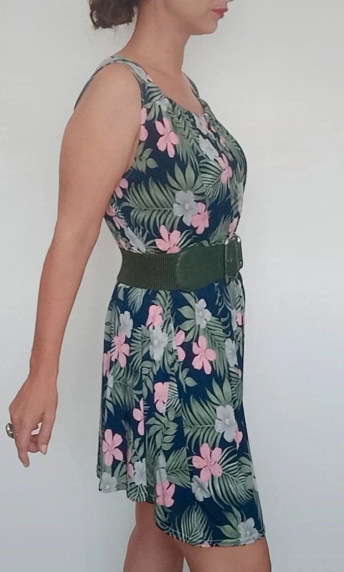 Regardez mes autres articles dans votre taille pour grouper les fdp #poupoupidoutu Robe courte sans manches, ample taille unique, a cintrer avec une ceinture ou laisser fluide, motif fleuri tons vert thème nature, casual, conforyable et féminine, fabrication Française #robeete #robefleurie #robefluide #robecasual #robemadeinfrance #robecasualchic #robeample #roberomantique #robenature