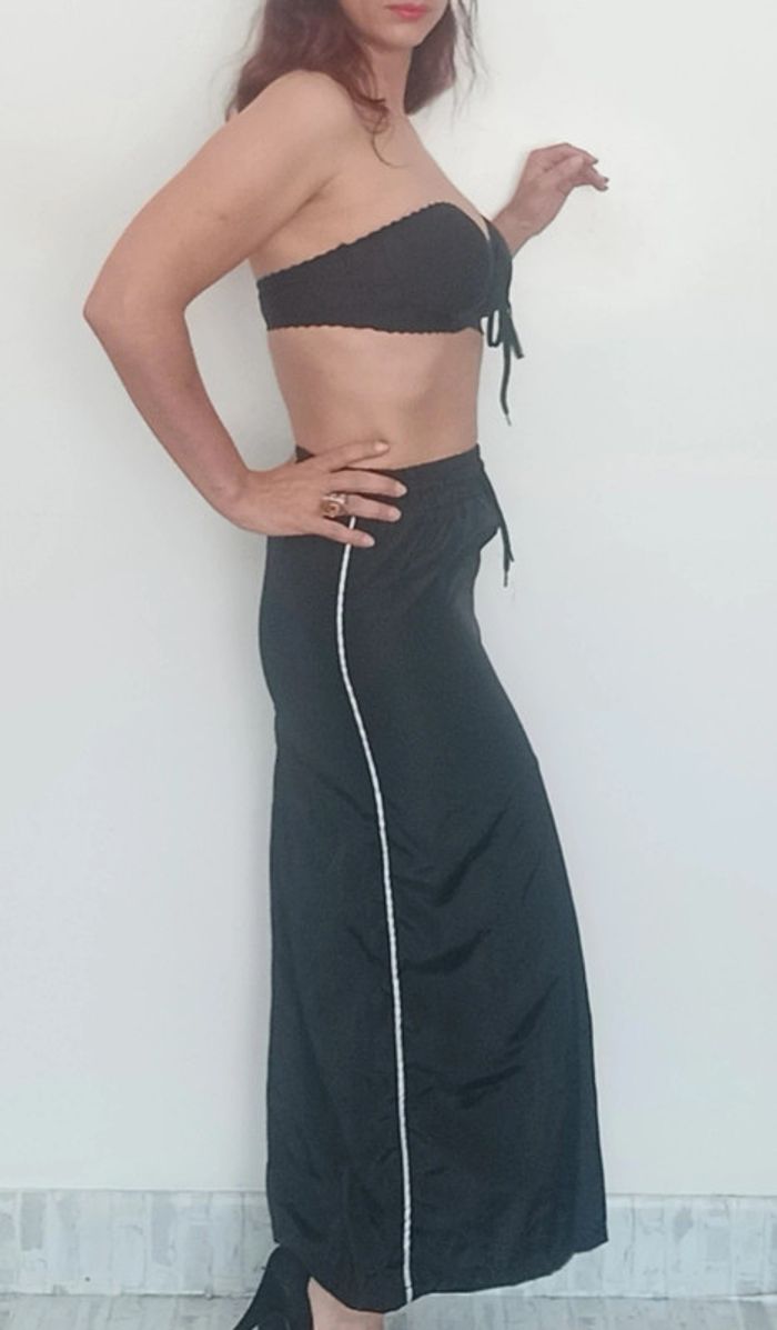 Regardez mes autres articles dans votre taille pour grouper les fdp #poupoupidou34 Jupe longue matière fine type parachute, unie noire avec bandes blanches côtés, taille élastiquée avec cordon, facile a porter et a assortir #jupelongue34 #jupeparachute34 #jupetendance34 #jupefine34 #jupelonguexs #jupesportwear34 #jupe34