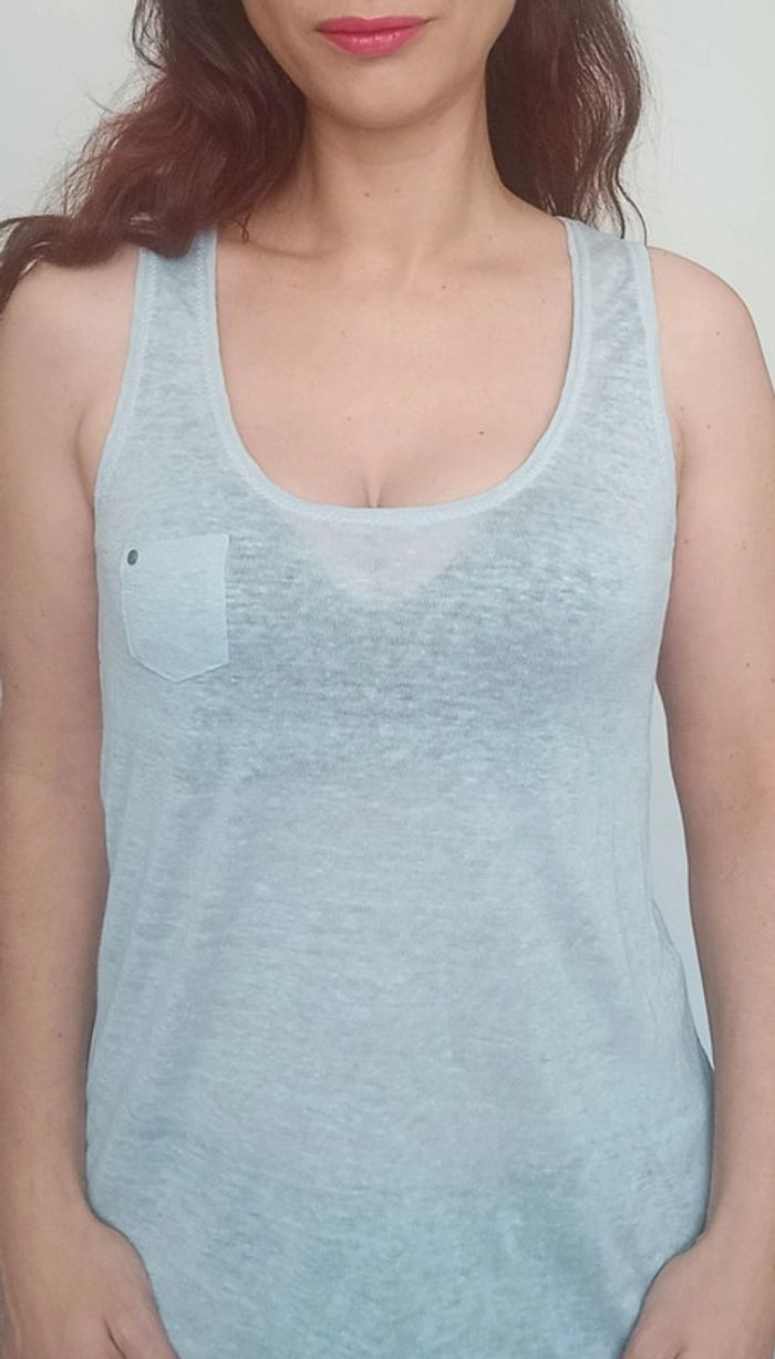 Regardez mes autres articles dans votre taille pour grouper les fdp #poupoupidou38 Débardeur fluide bleu pastel légèrement transparent, casual, féminin et facile a assortir marque #bonobo38 #debardeur38 #top38 #toppastel #debardeurbonobo38 #topbonobo38