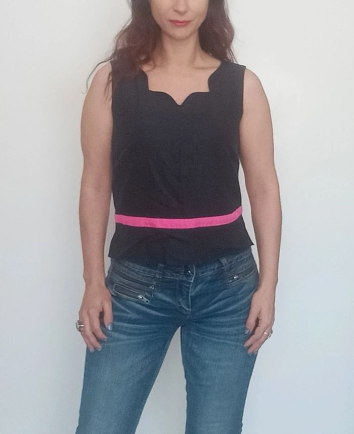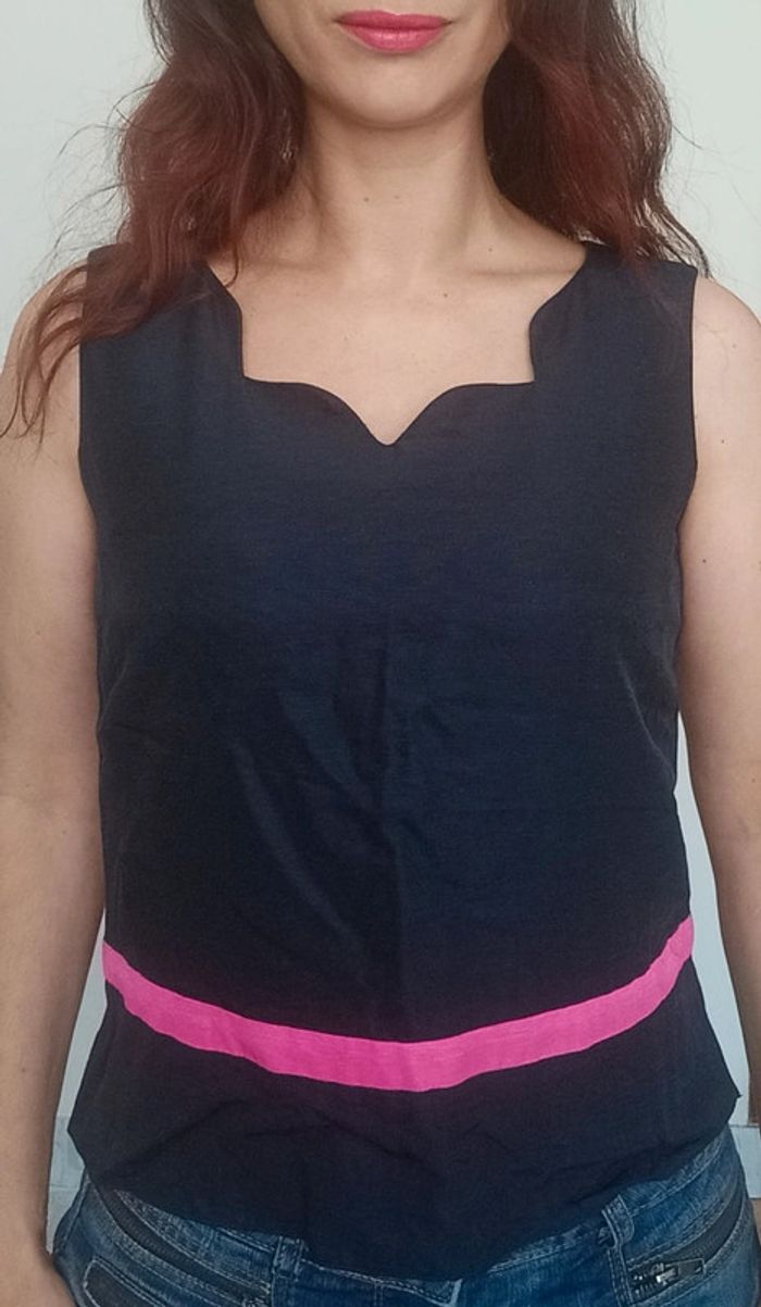 Regardez mes autres articles dans votre taille pour grouper les fdp #poupoupidou40 Haut casual sans manche uni marine avec liserés fushia, forme vagues au décolleté, matière type lin, facile a porter et a assortir #haut40 #hautmarine40 #hautsansmanches40 #hautcasual40