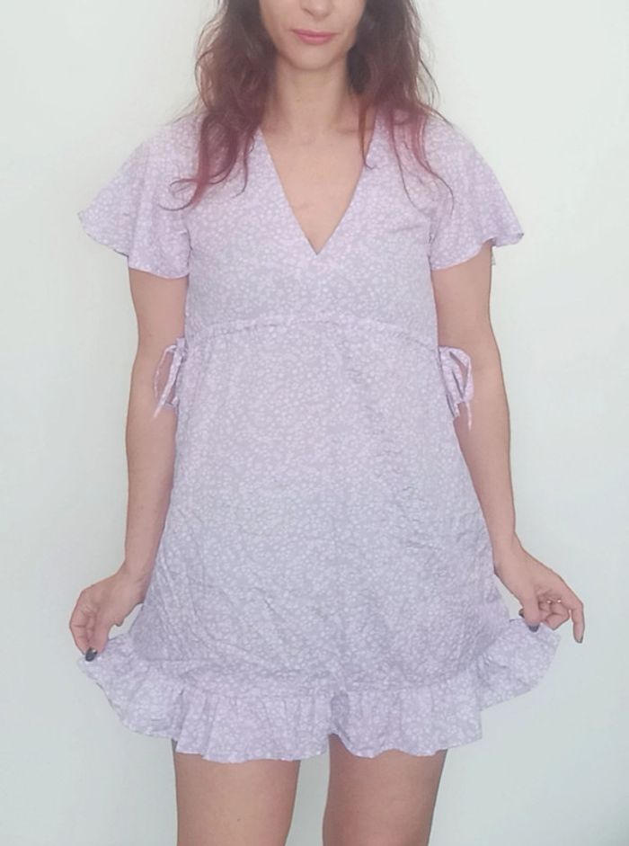 Robe d été courte romantique fleurie lila taille 36/38 - photo numéro 4