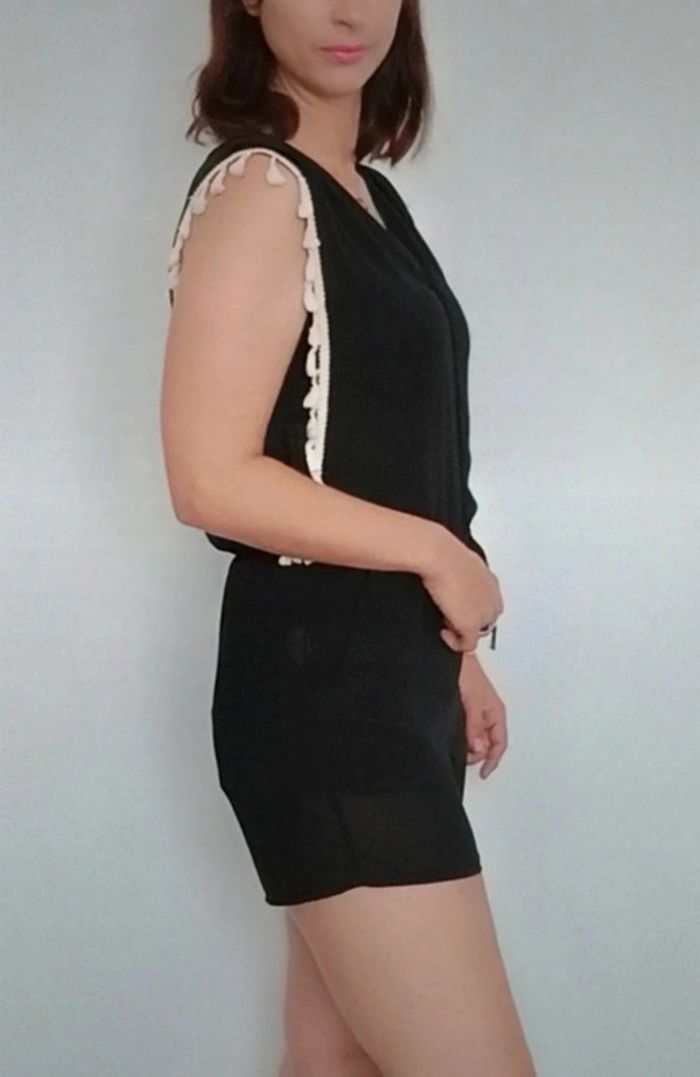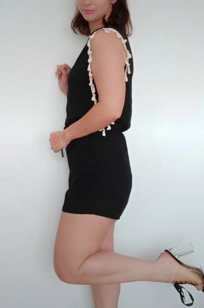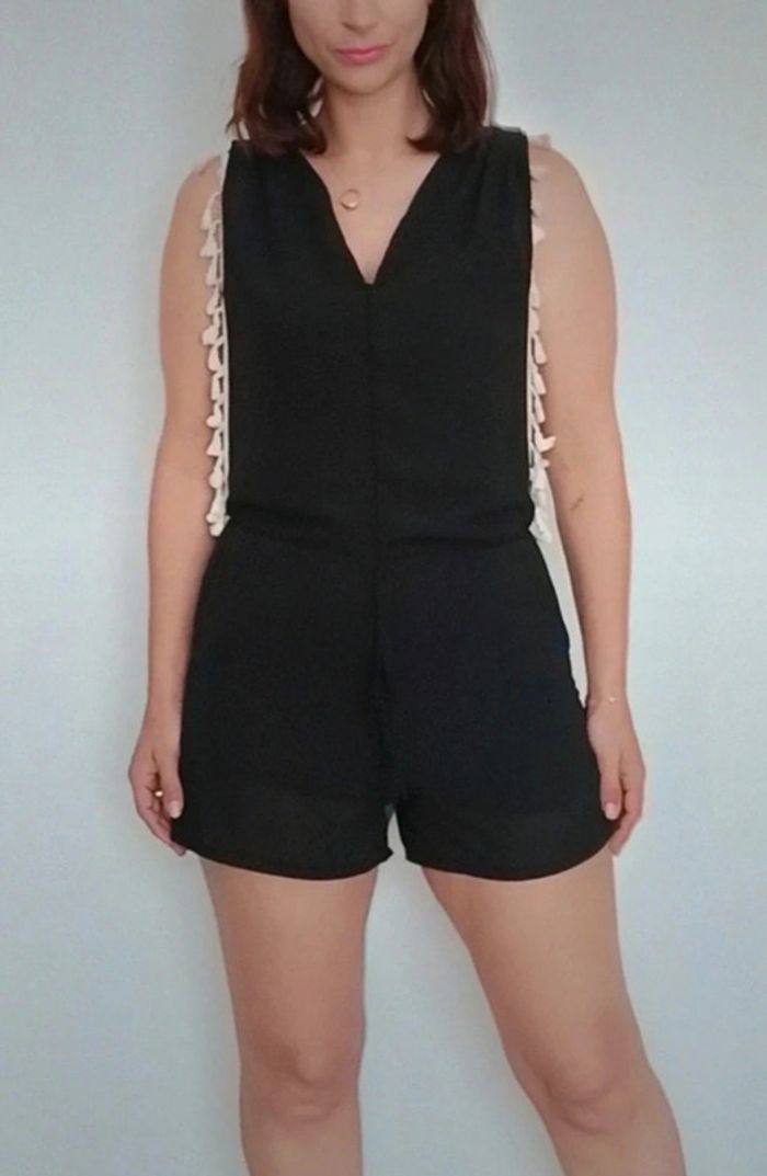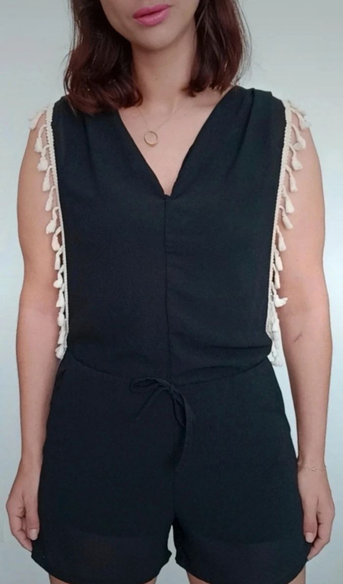Regardez mes autres articles dans votre taille pour grouper les fdp #poupoupidoutu Combishort unie noire avec franges blanches, décolleté en V, fluide et confortable, style casual féminin #combishort #combiete #combishortcasual #combishortete #combishortfranges #combishortfrangee #combishortcasual #combishorttailleunique #combishortete