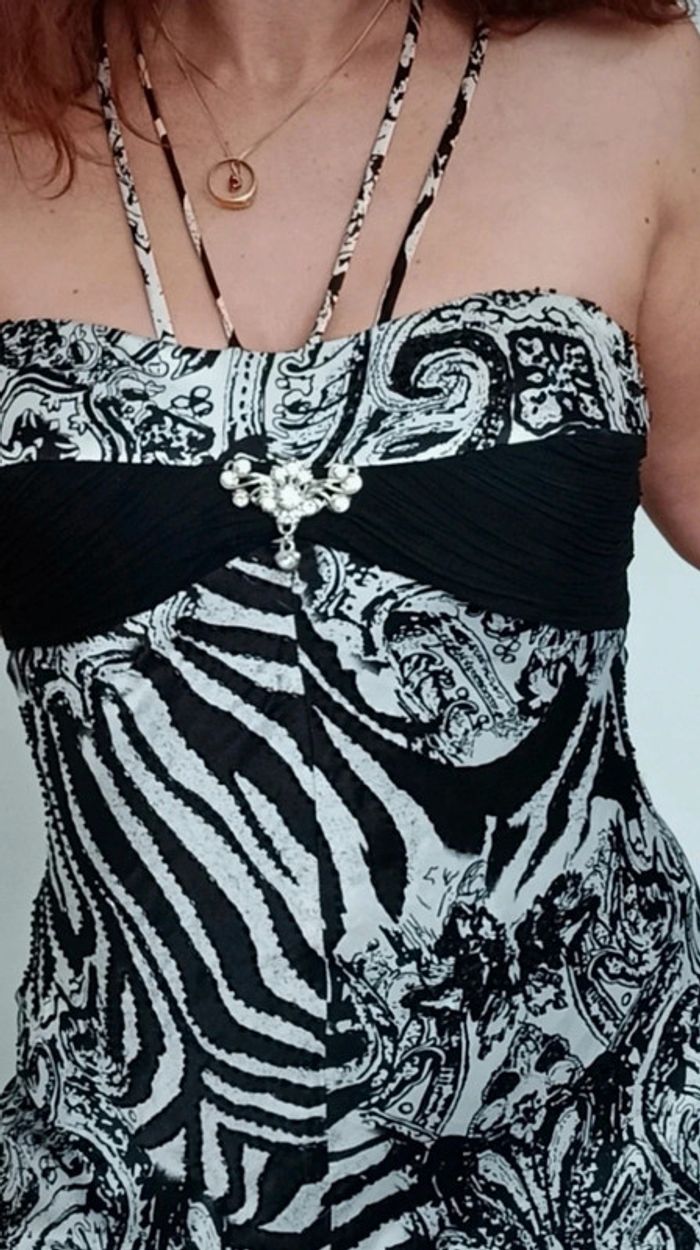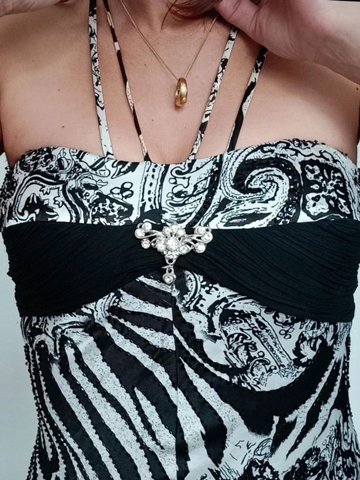 Regardez mes autres articles dans votre taille pour grouper les fdp #poupoupidou38 Robe longue de soirée noire et blanche zébrée, haut façon bustier avec tour de cou,avec broche argentée a perles façon vintage, jupe longue évasée asymétrique plus longue derrière, doublée, 100% soie très douce, perles noires brillantes ( en manque quelques unes mais non visible) bon état car tour de cou très légèrement teinté #robesoiree38 #robelongue38 #robesoie38 #robelonguesoie38 #robesoireesoie38 #robecocktail38 #robeevenement38 #robezebree38 #robeceremonie38 #robeprincesse38 #robelongueasymetrique38 #robechic38 #robenoireetblanche38 #robe100soie