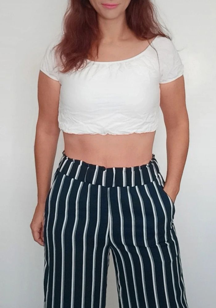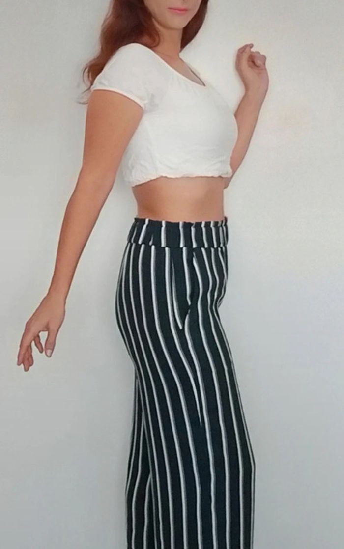 Regardez mes autres articles dans votre taille pour grouper les fdp #poupoupidou38 Pantalon ample jambes bien larges, ceinture élastiquée, rayé casual chic facile a assortir, marine presque noir et blanc, basique idéal printemps été, intemporel #pantalonfluide38 #pantalonlarge38 #pantalonjambeslarges38 #pantalonample38 #pantalonraye38 #pantalonintemporel38 #pantalonbasique38 #pantalonete38