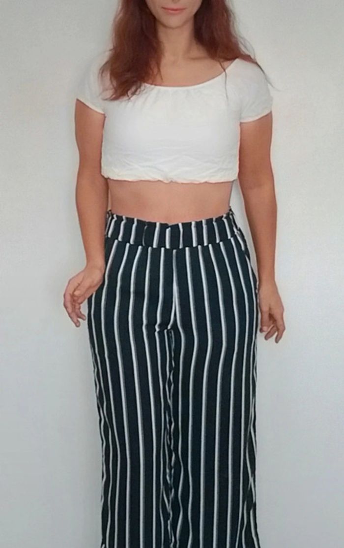 Pantalon large rayé casual chic taille 38
