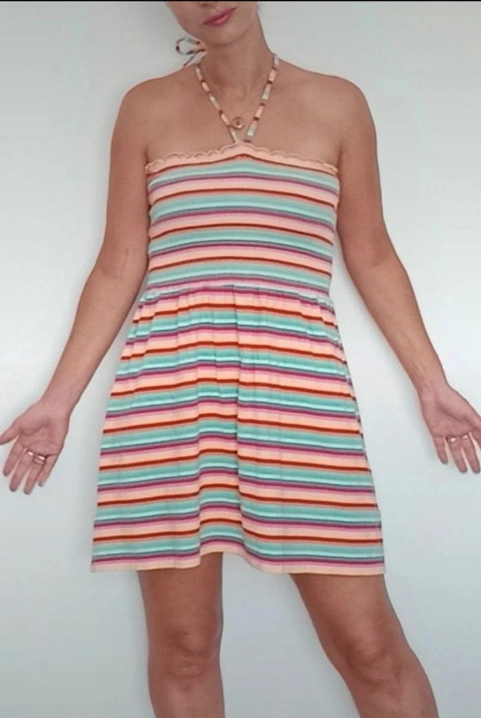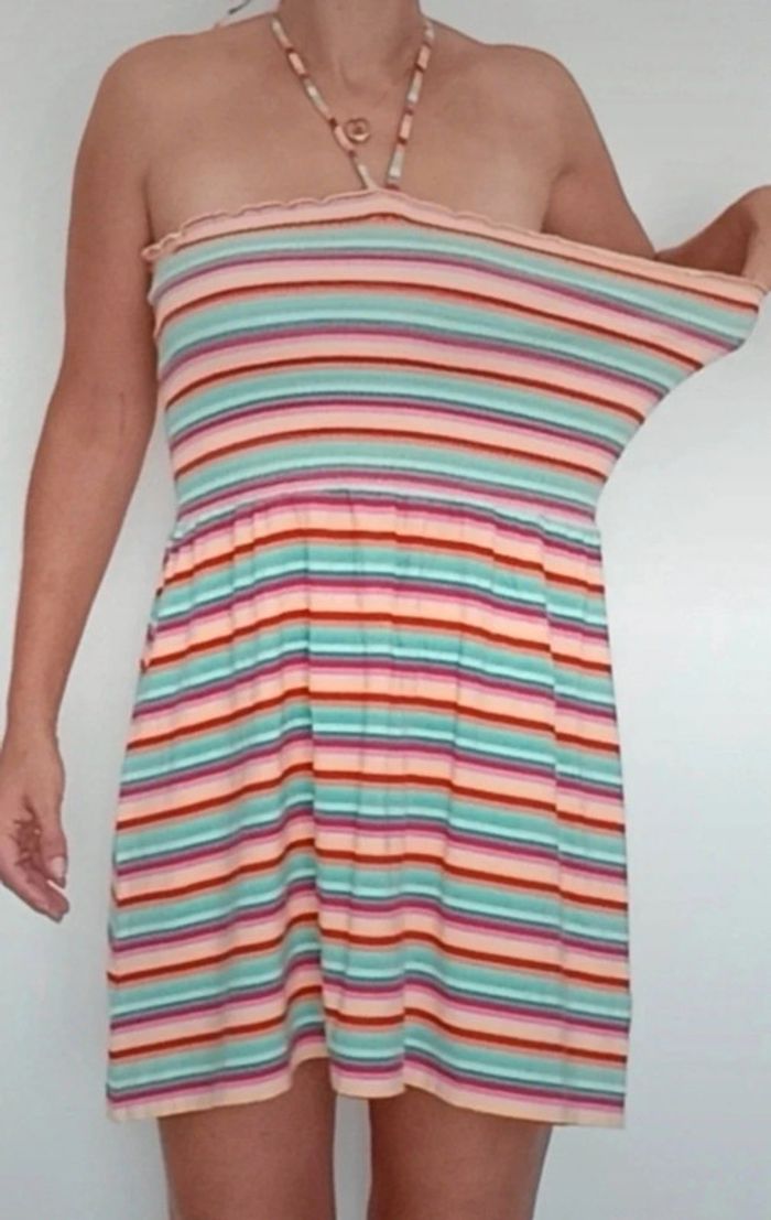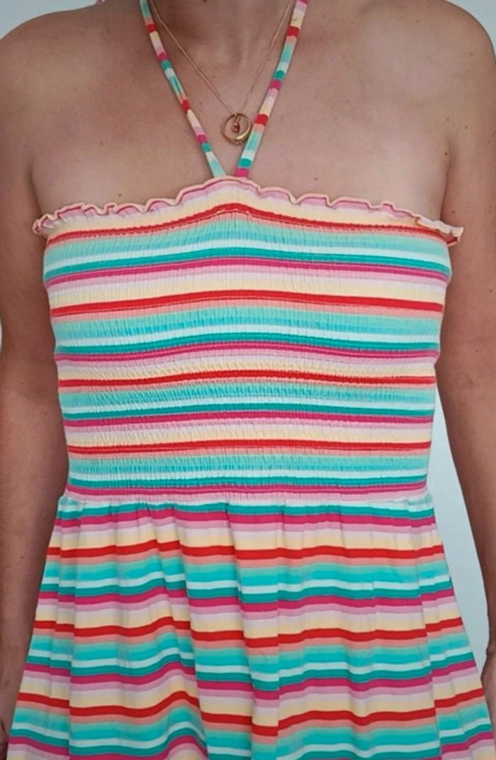 Regardez mes autres articles dans votre taille pour grouper les fdp #poupoupidou38 Robe d été haut bustier smocké avec tour de cou, jupe fluide, motif rayé et très colorée, casual, confortable et féminine #robeete38 #roberayee38 #robesmockee38 #robecasual38