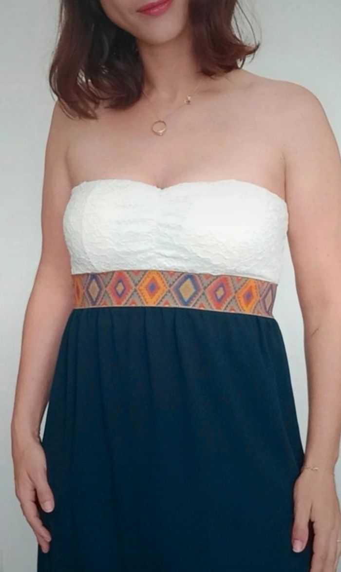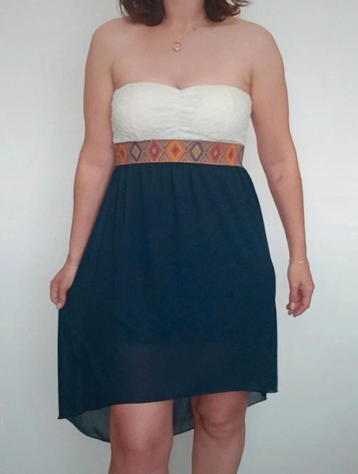 Regardez mes autres articles dans votre taille pour grouper les fdp #poupoupidoutu Robe bustier doublée dentelle au buste avec pads, taille empire, jupe doublée fluide asymétrique, idéale été ou occasion, confortable et féminine, made in France #robebustier #robeete #robeasymetrique #robebustierdentelle #robebustierasymetrique #robeevenement #robecasual