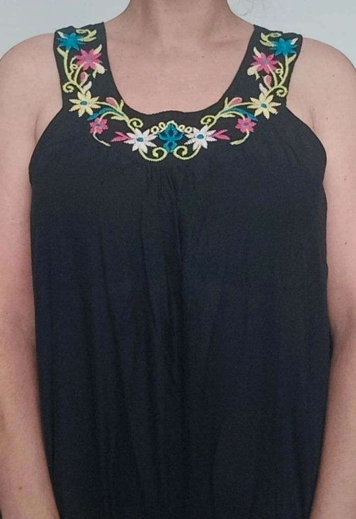 Robe d été casual fluide noire à broderies TU - photo numéro 3