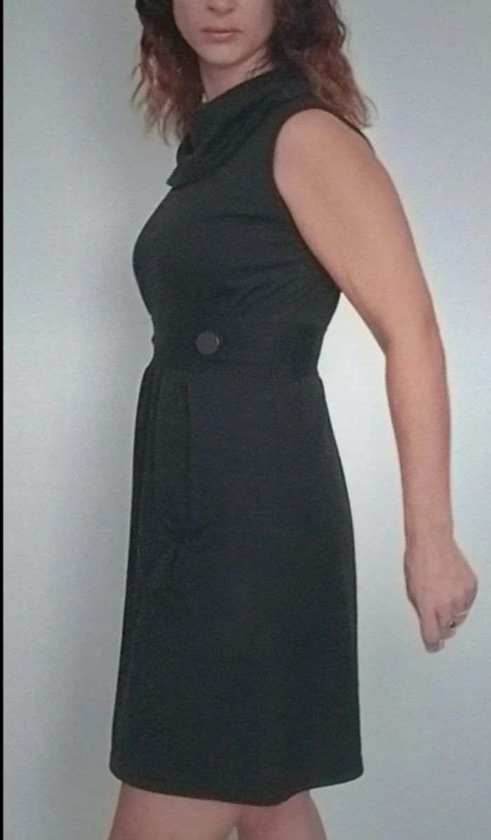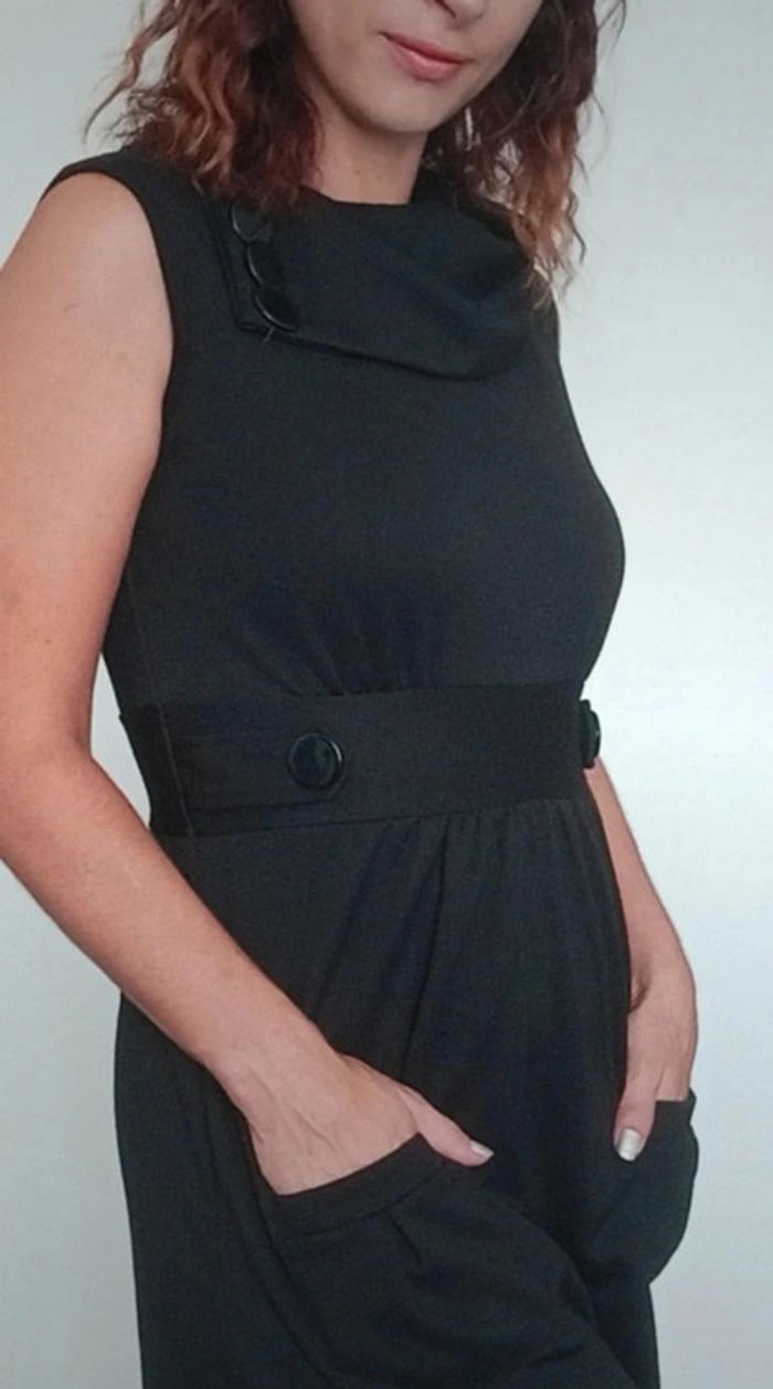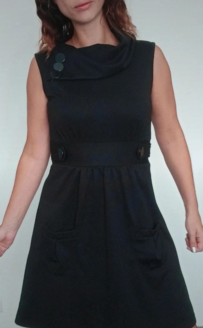 Regardez mes autres articles dans votre taille pour grouper les fdp #poupoupidou38 Petite robe noire buste sans manches, col retombant asymétrique, jupe mi longue fluide, cintrée a la taille avec boutons décoratifs, facile a porter, féminine et confortable, matière épaisse de qualité #robe38 #petiterobenoire38 #robechic38 #robebasique38 #robetravail38 #robenoire38 #robepinup38