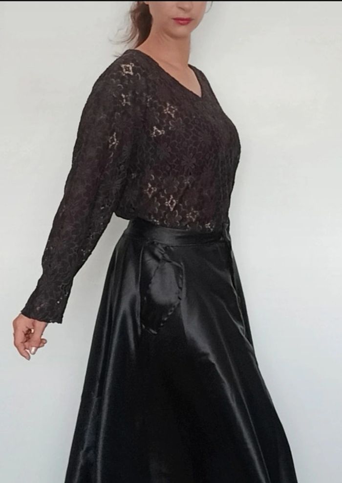Blouse en dentelle noire ajourée vintage grande taille - photo numéro 7