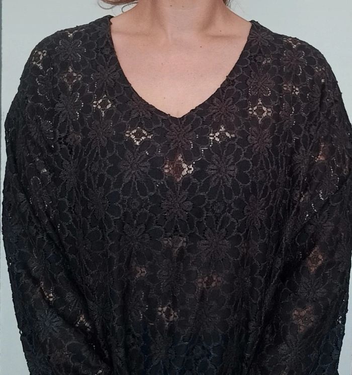 Blouse en dentelle noire ajourée vintage grande taille - photo numéro 2