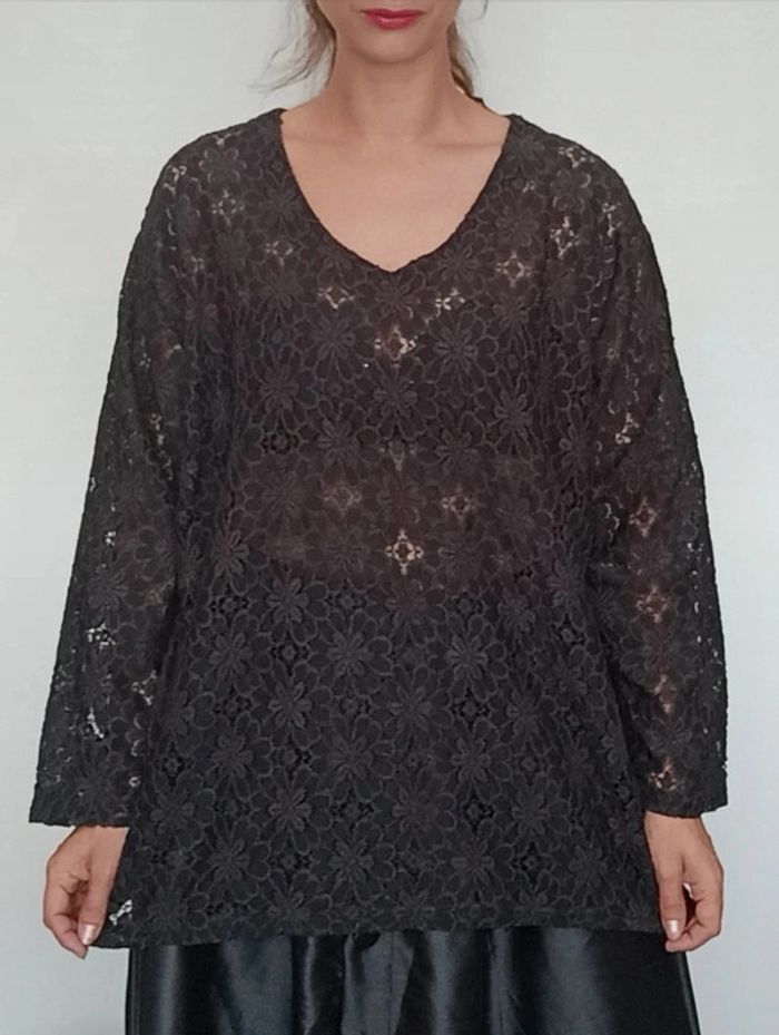 Blouse en dentelle noire ajourée vintage grande taille - photo numéro 1