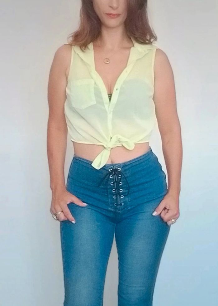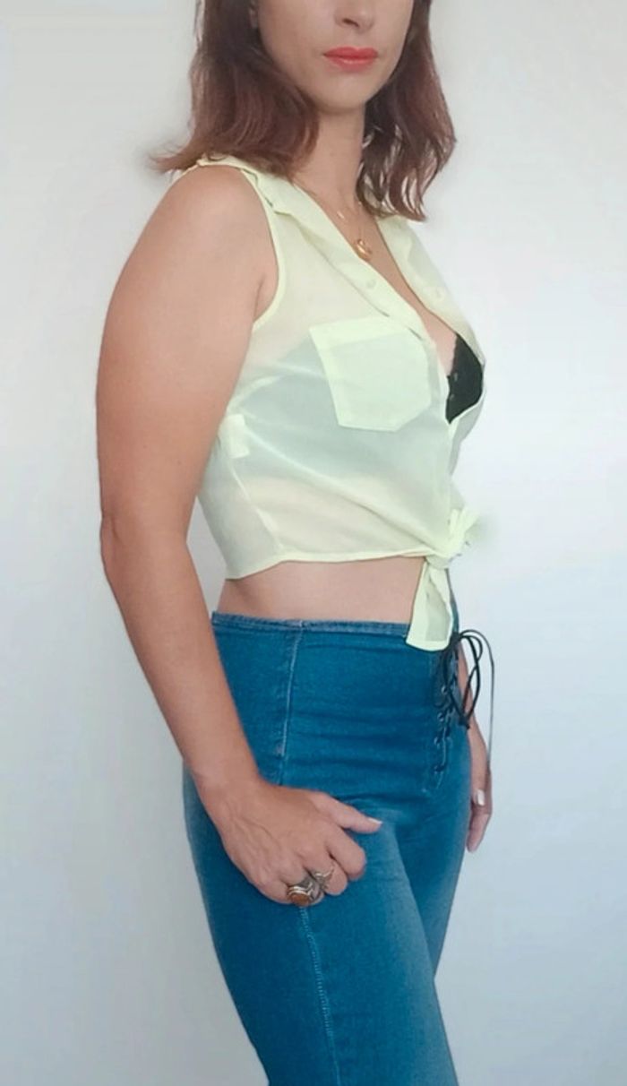 Regardez mes autres articles dans votre taille pour grouper les fdp #poupoupidou36 Chemisier sans manches voile transparent jaune citron pastel, a nouer, courte, facile a porter et a assortir idéale été #chemisieranouer36 #chemiseanouer36 #chemisiervoile36 #chemisiertransparent36 #chemisevoile36 #chemisierete36 #chemisierpastel36 #chemisecourte36 #topcropchemise #chemisiertopcrop