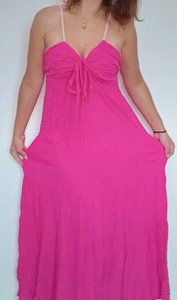 Robe maxi longue douce décolleté rose taille unique - photo numéro 1
