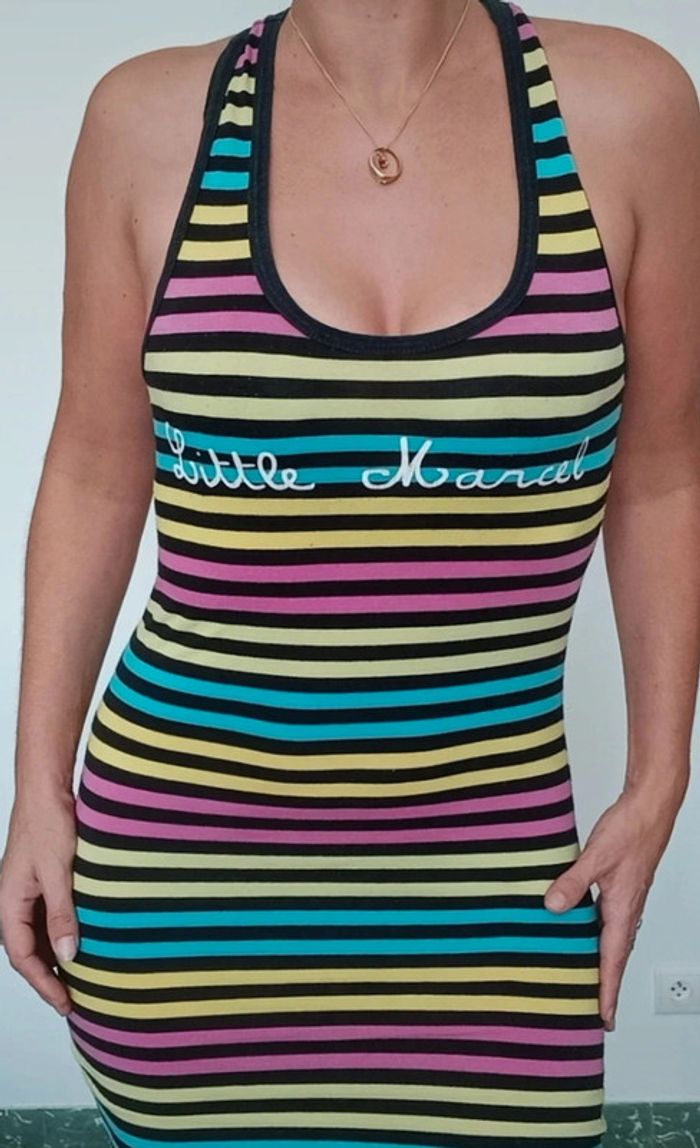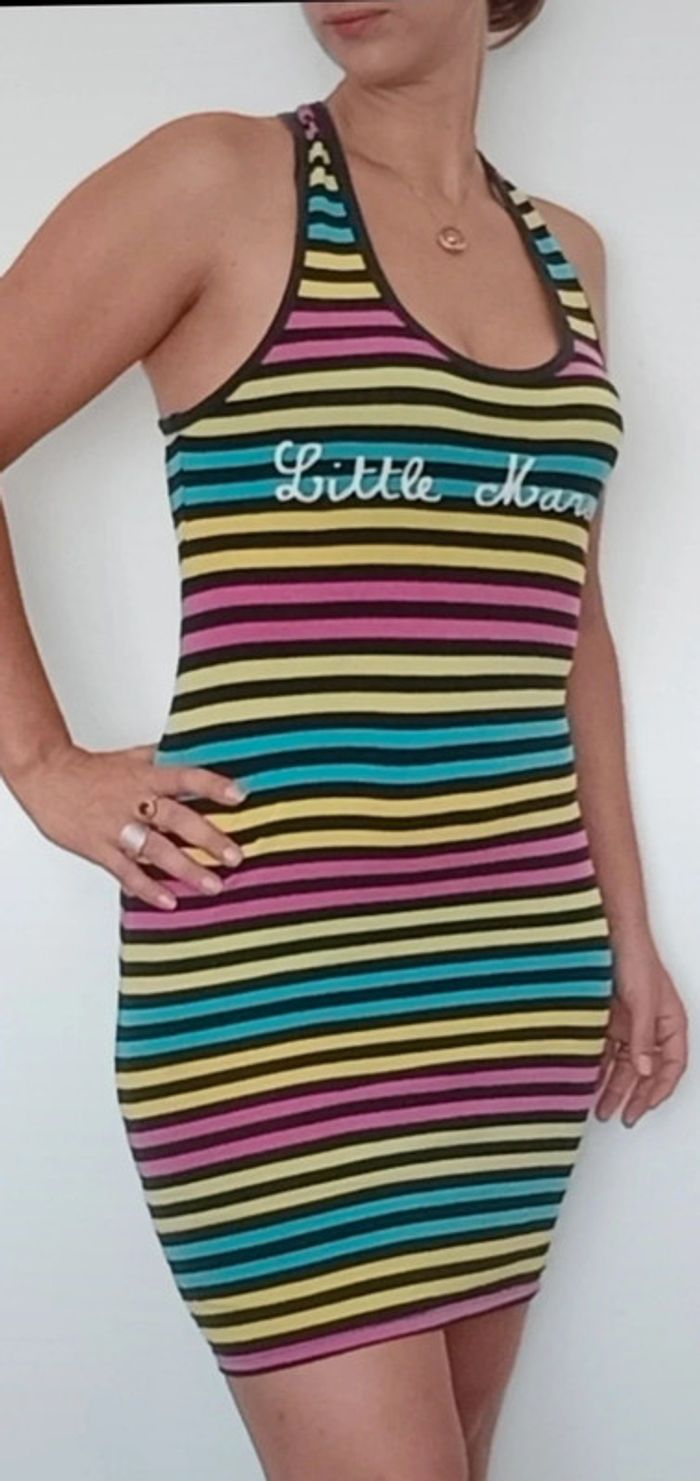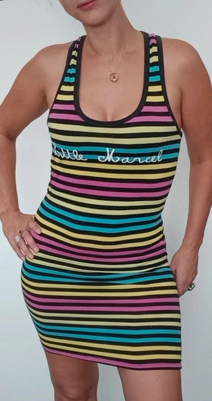 Regardez mes autres articles dans votre taille pour grouper les fdp #poupoupidou38 Mini robe rayée colorée, décolleté arrondi féminin, moulante, forme marcel nageur dans le dos, sexy et confortable, bien portée mais sans trous ni tâches #minirobe38 #robeete38 #robelittlemarcel #robelittlemarcel38 #roberayee38 #robecoloree38 #robemoulante38 #robesexy38 #robedosnageur38