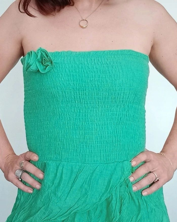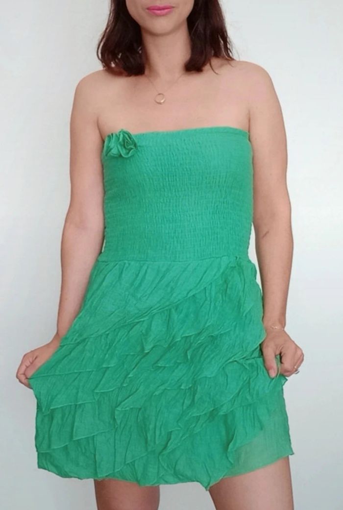 Robe bustier smockée volantée verte taille unique - photo numéro 1