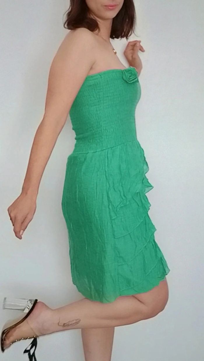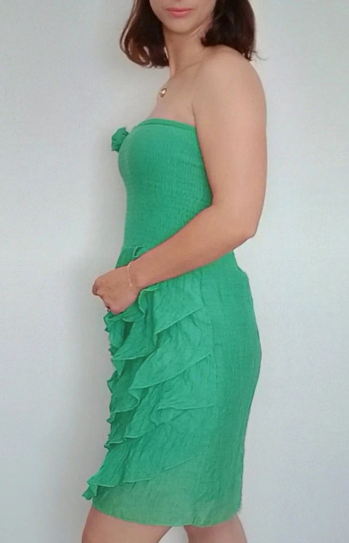 Robe bustier smockée volantée verte taille unique - photo numéro 3