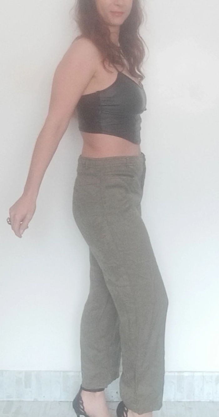 Pantalon casual mélange lin kaki taille 44 - photo numéro 5