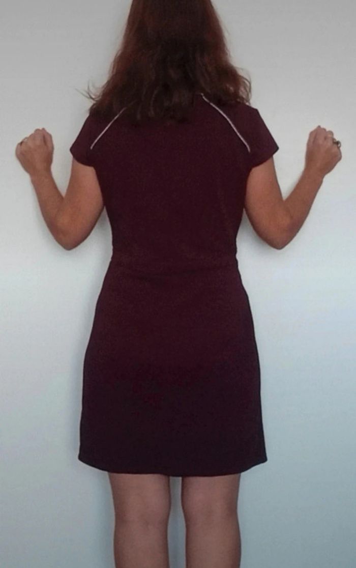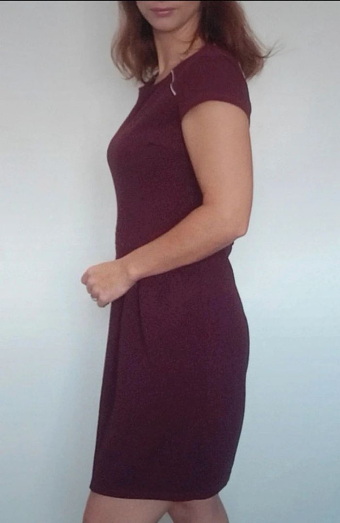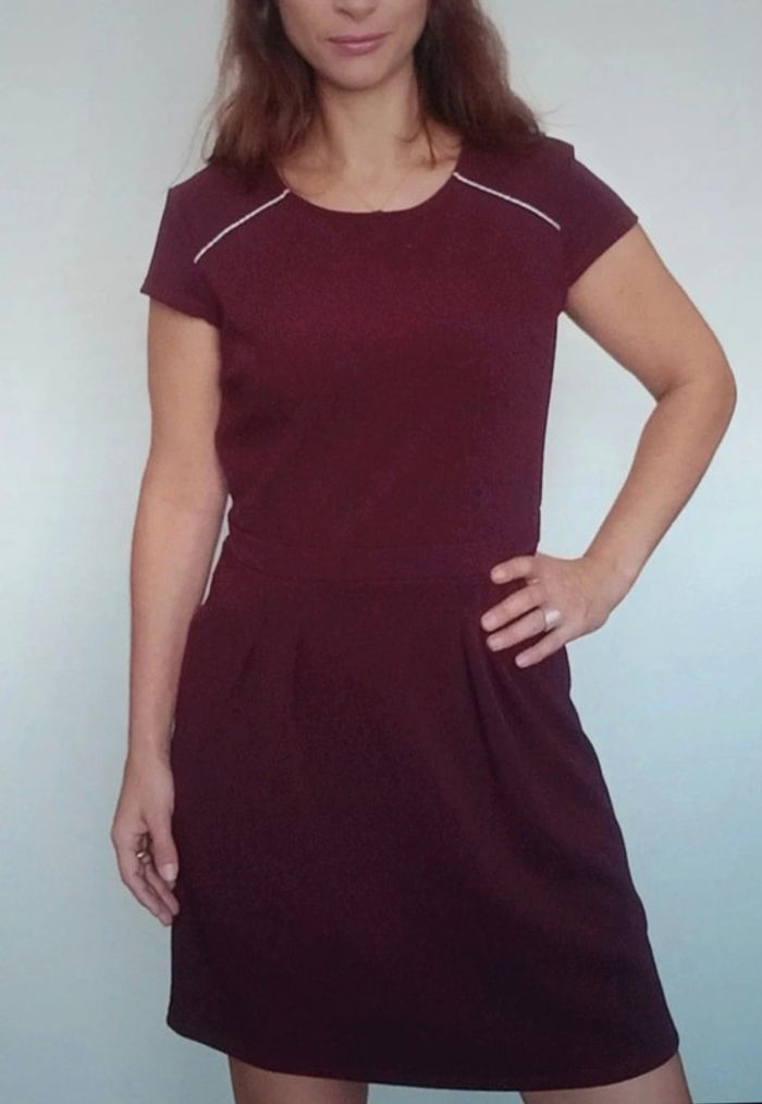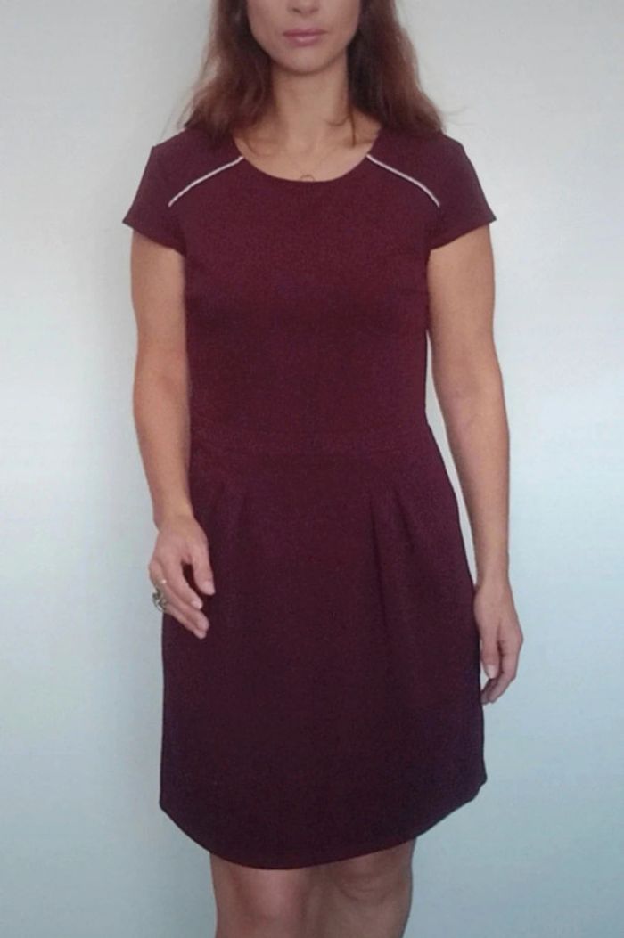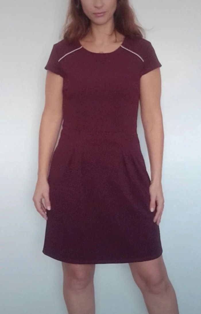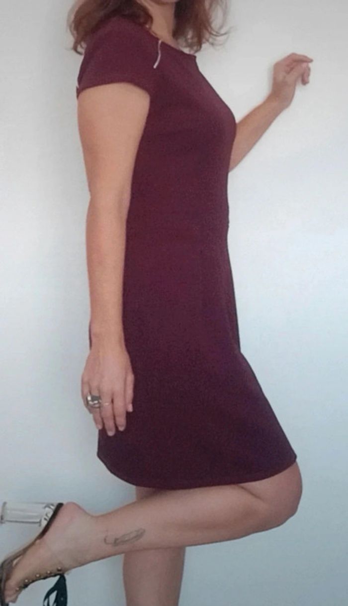 Robe courte féminine manches courtes unie bordeaux, casualchic, idéal printemps #robebordeaux40 #robeprintemps40 #robe40 #robechic40 #robecamaieu40 #robefeminine40 #robetravail40