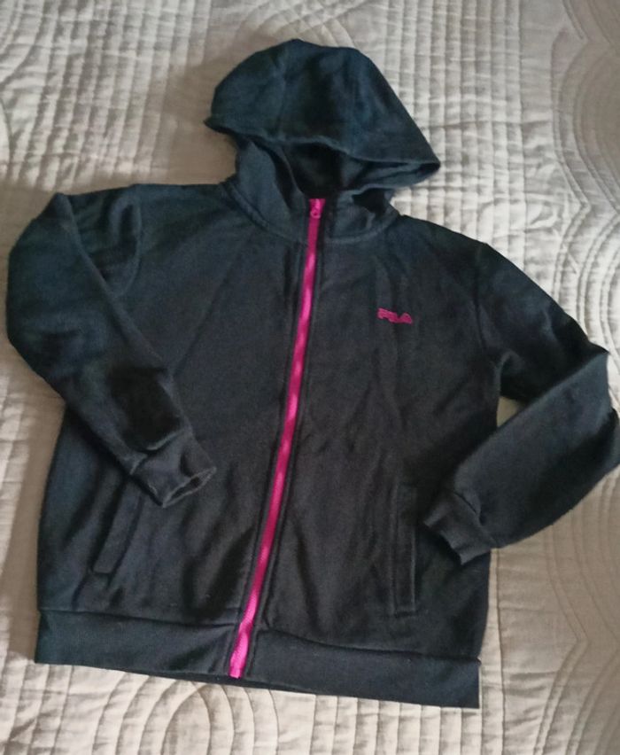 Sweat à capuche Fila noir et rose taille 9/10 ans - photo numéro 1