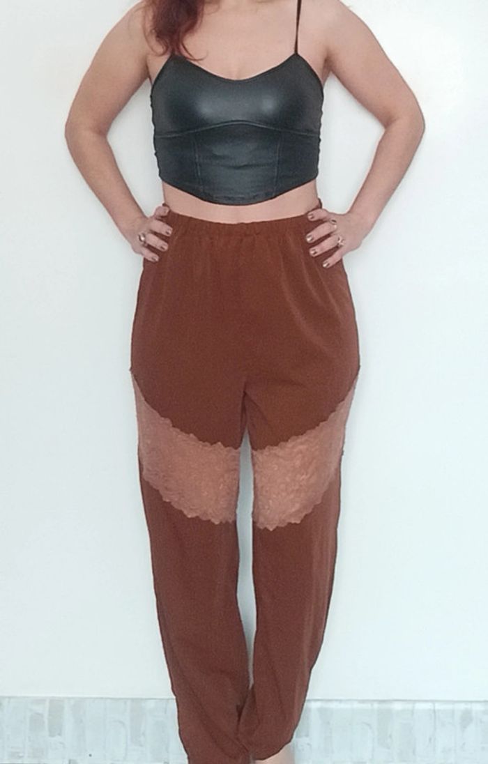 Pantalon fluide jambes large empiècement dentelle tu - photo numéro 1