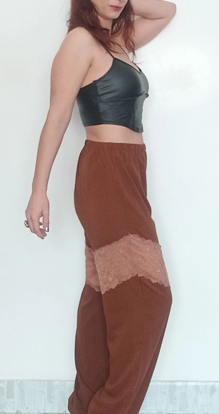 Regardez mes autres articles dans votre taille pour grouper les fdp #poupoupidoutu Pantalon fluide jambes bien larges, taille élastiquée et cordons aux chevilles, confortable et tendance, uni marron facile a assortir, détail empiècements en dentelle aux cuisses, tu du 36/38 au 42/44 #pantalonlarge #pantalonfluide #pantalonbaggy #pantalonmarron #pantalonjambeslarges #pantalonavecdentelle #pantalontendance