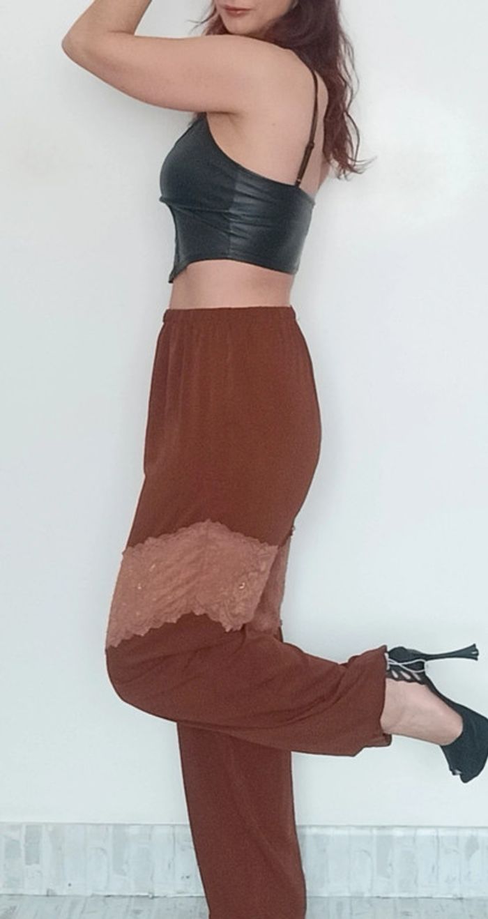 Pantalon fluide jambes large empiècement dentelle tu - photo numéro 4