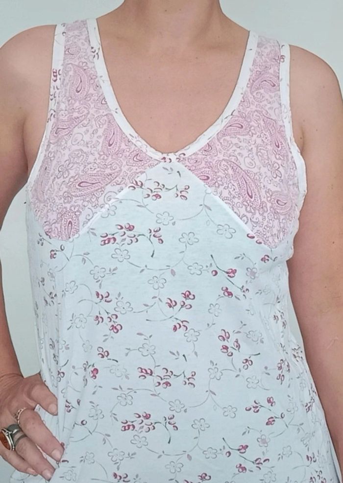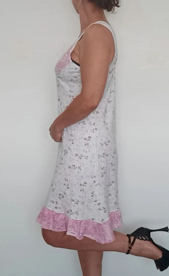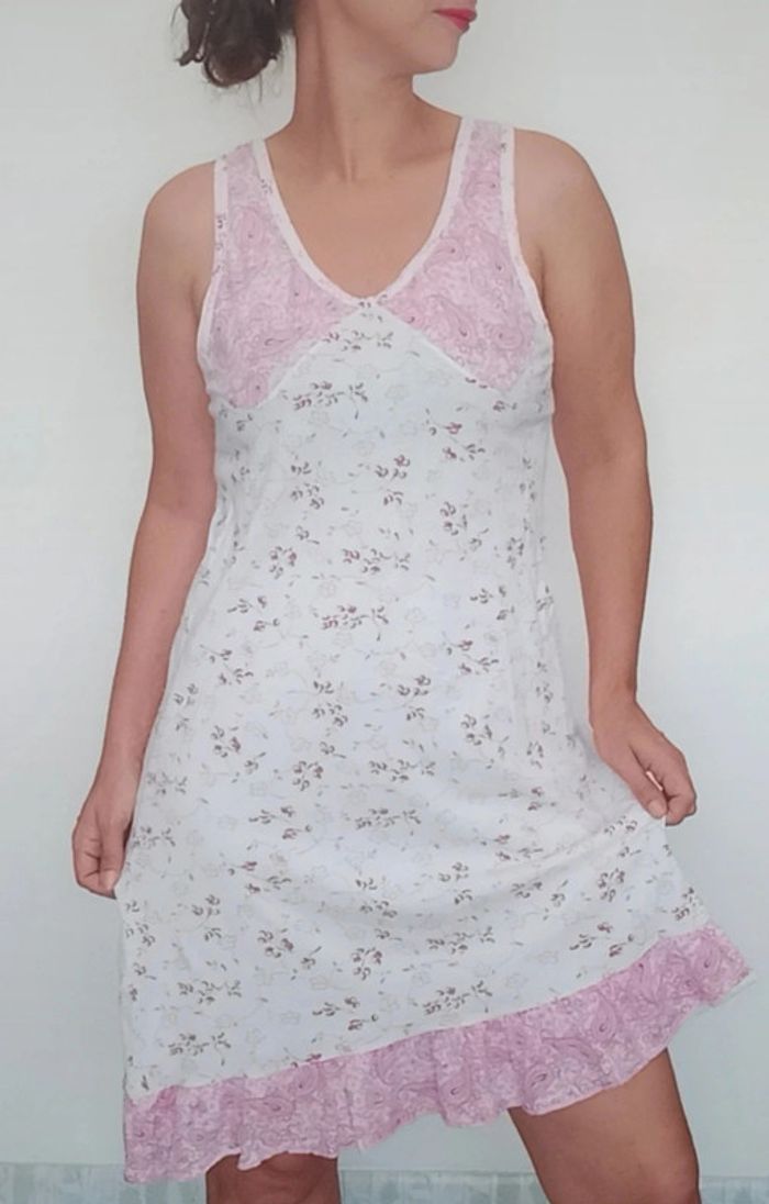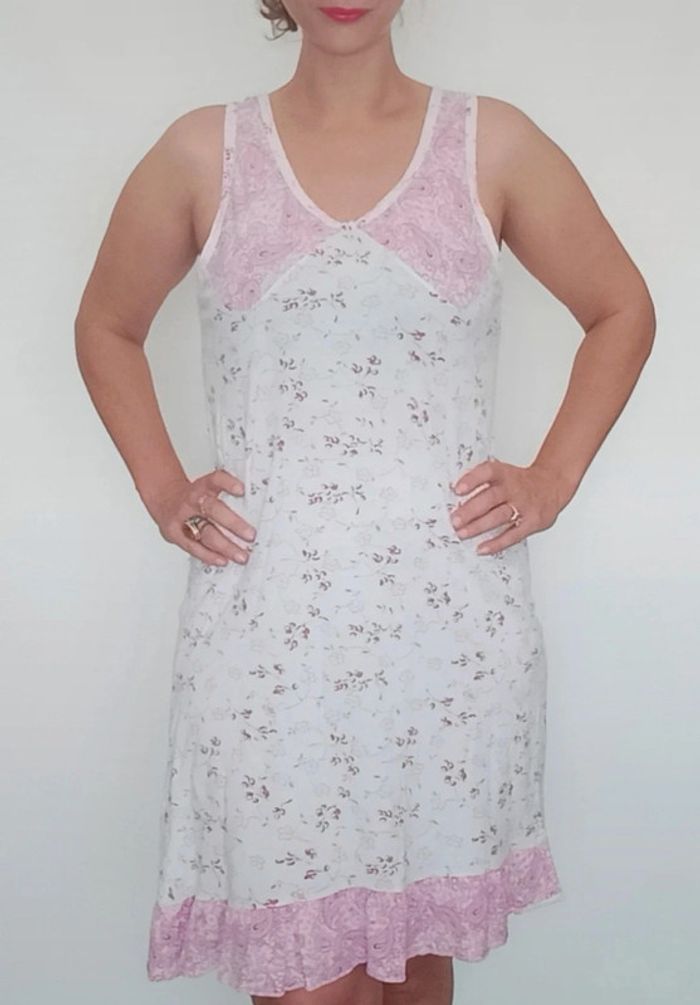 Regardez mes autres articles dans votre taille pour grouper les fdp #poupoupidou40 Chemise de nuit/ nuisette coton casual romantique blanche et rose, mi longue fluide sans manches #nuisette40 #chemisedenuit40 #chemisedenuitvintage40 #chemisedenuitcasual40 #nuisettecoton40 #nuisettevintage40