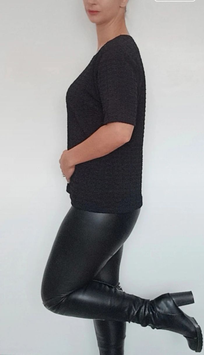 T-shirt leger texturé uni noir basique taille 42 - photo numéro 3