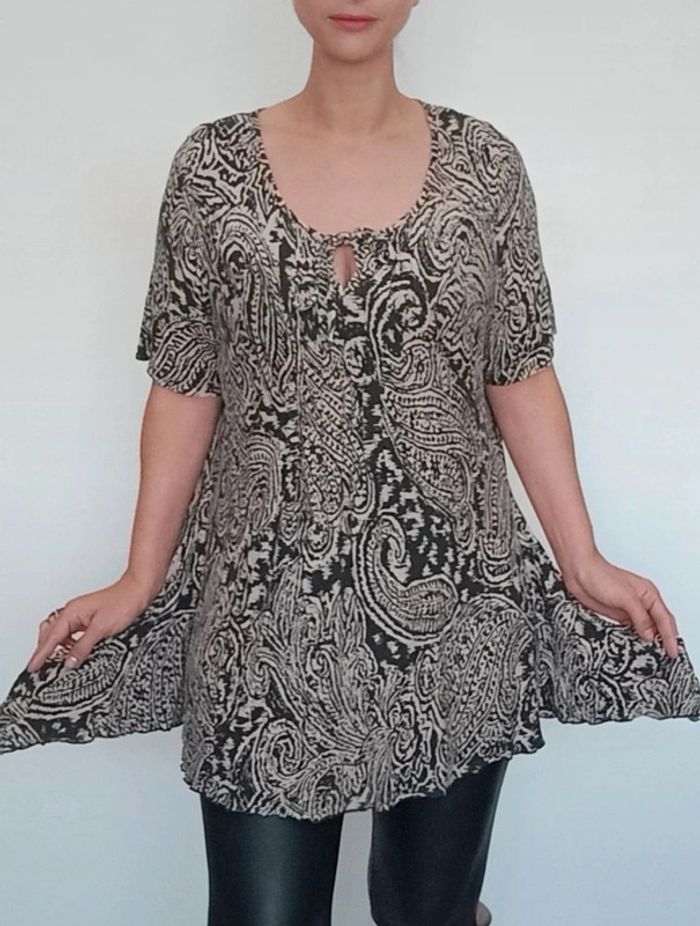 Regardez mes autres articles dans votre taille pour grouper les fdp #poupoupidouxl Tunique casual asymétrique confortable et féminine, idéale sur leggings, imprimé style ethnique chic #tunique42 #tuniquexl #tuniquecasual42 #tuniqueasymetrique42 #tuniqueethnique42 #tuniqueasymetriquexl