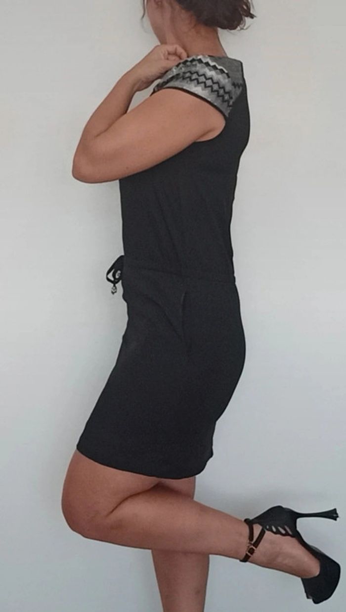 Regardez mes autres articles dans votre taille pour grouper les fdp #poupoupidou36 Petite robe noire courte à blouser grave au cordon à la taille, détail manches courtes sequins argentés et noirs, casual chic, intemporelle, basique et féminine #robenoire36 #petiterobenoire36 #robecasualchic36 #robesoiree36 #robeblouse36 #robesequins36 #robebasique36