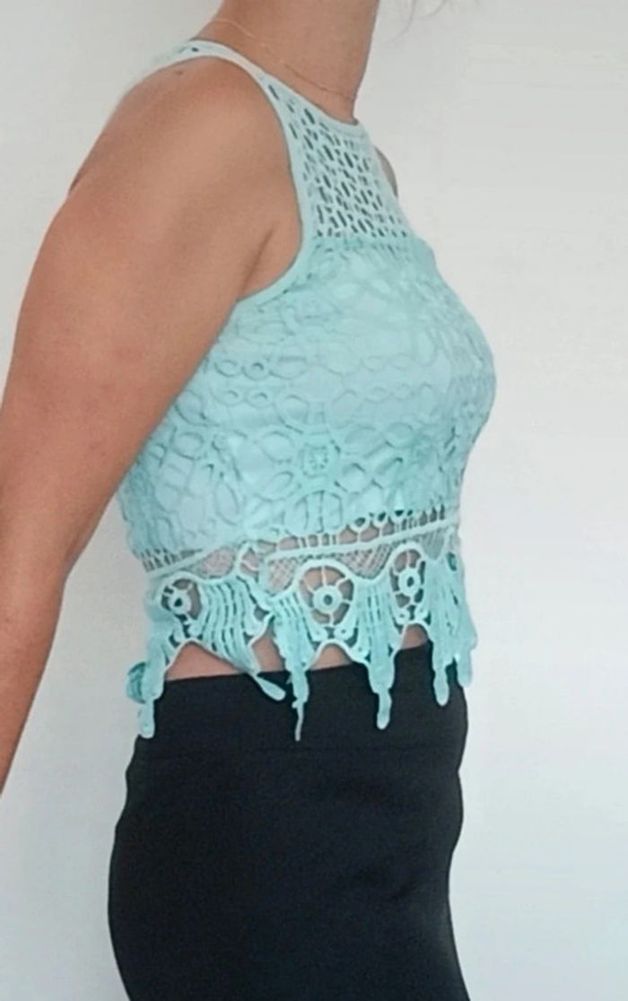Top crop turquoise doublé crochet neuf taille 38 - photo numéro 6