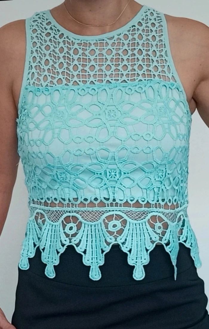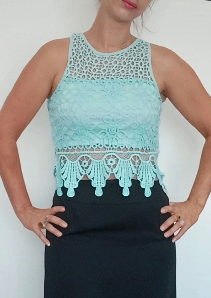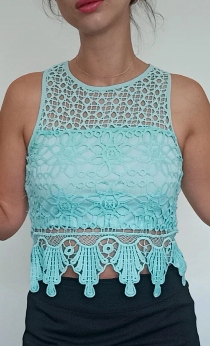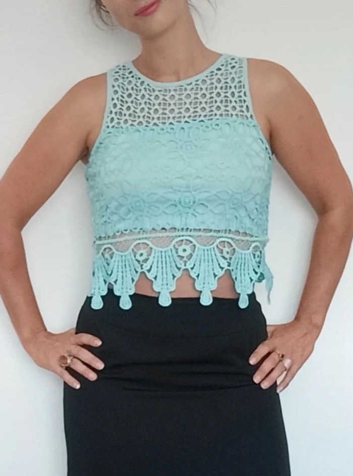 Top crop turquoise doublé crochet neuf taille 38 - photo numéro 2