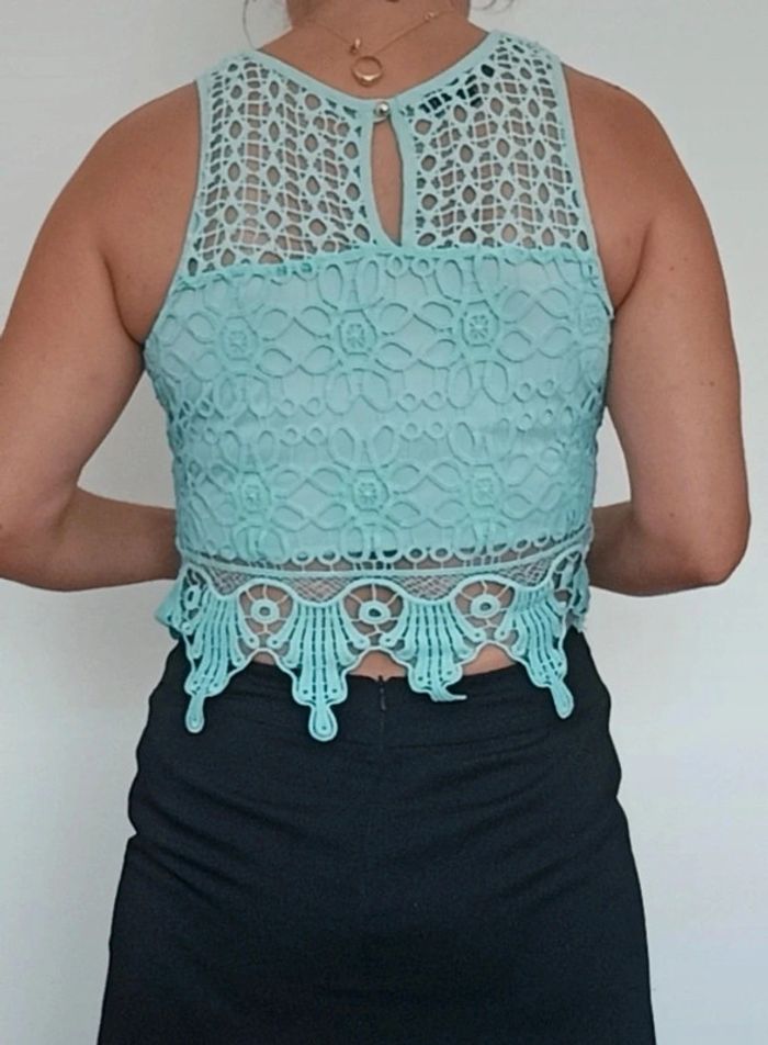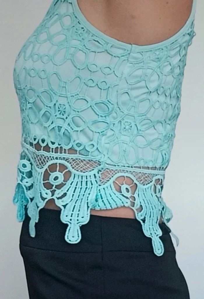 Top crop turquoise doublé crochet neuf taille 38 - photo numéro 8