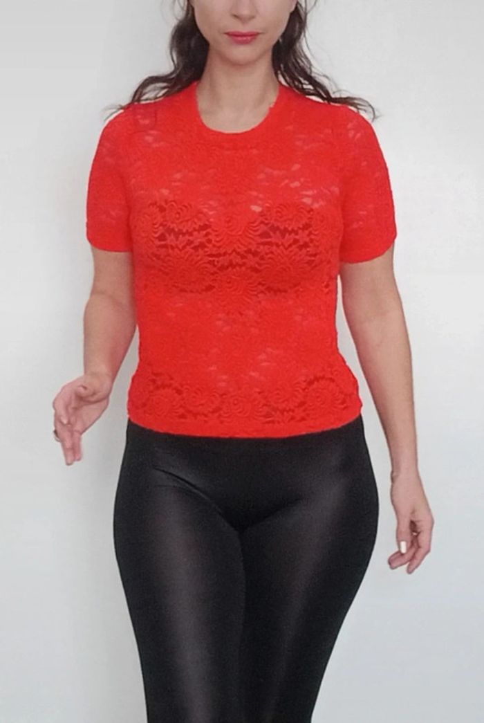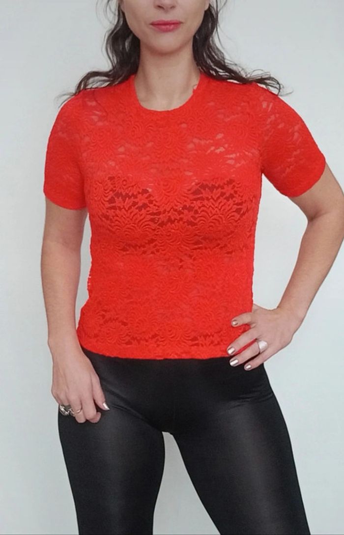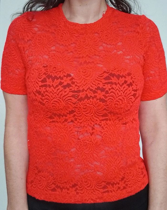 Haut dentelle corail chic taille 38/40 - photo numéro 1