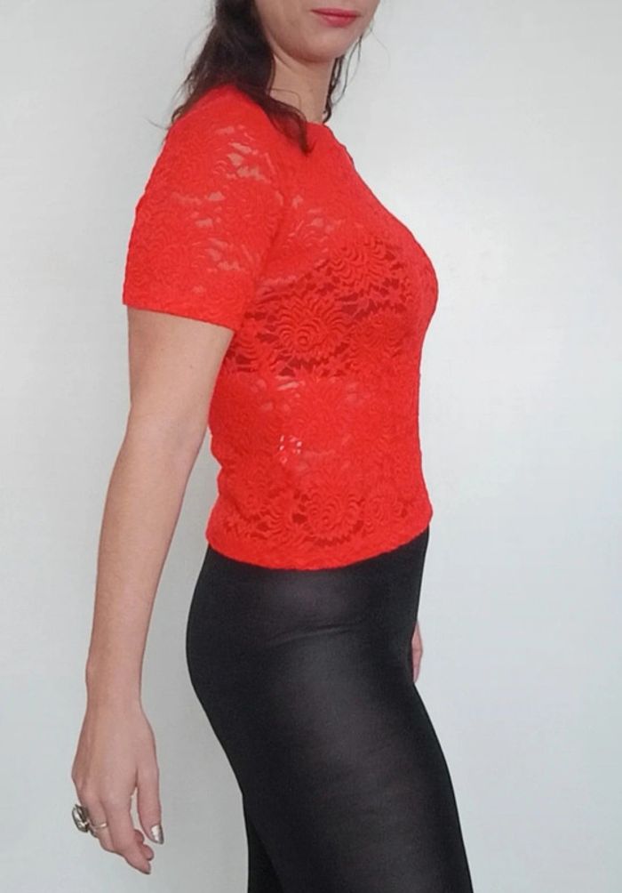 Haut dentelle corail chic taille 38/40 - photo numéro 5