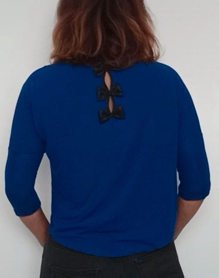 Pull fin bleu roi nœuds au dos taille unique - photo numéro 4