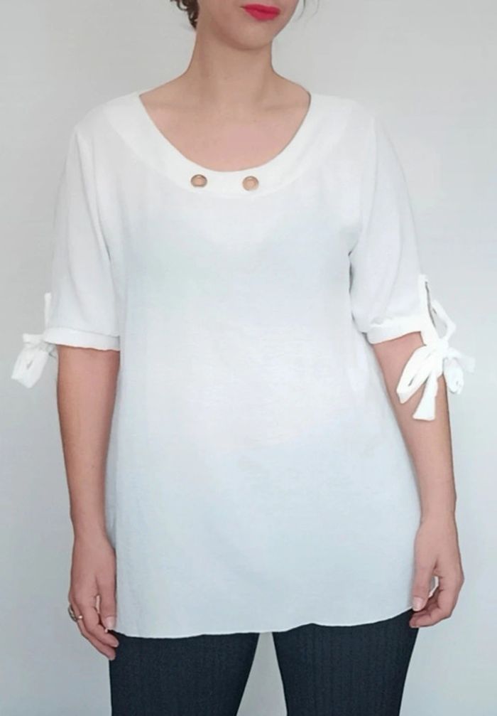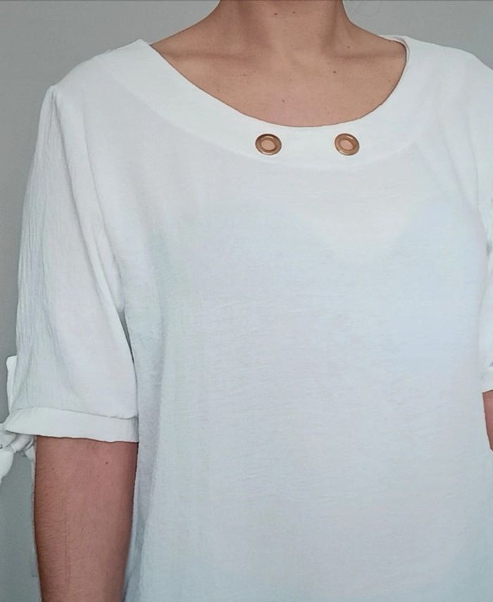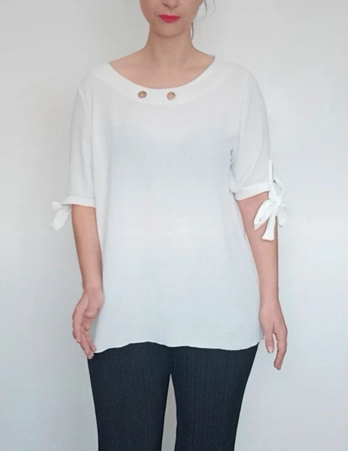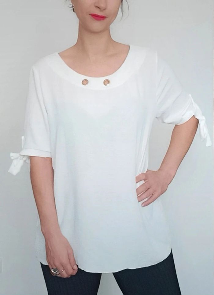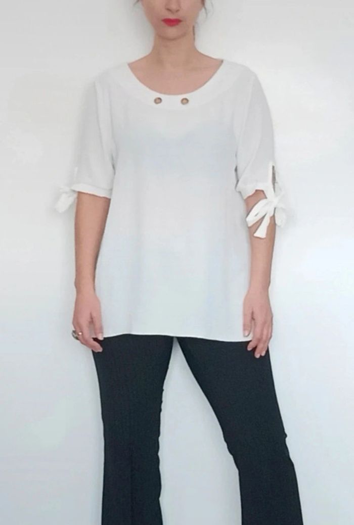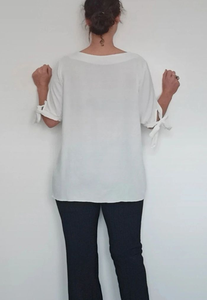 Regardez mes autres articles dans votre taille pour grouper les fdp #poupoupidoutu Blouse unie blanche, longue et fluide, manches trois quarts avec noeuds, style casual chic facile a porter et a assortir, matière légère fluide #blouse #blouseblanche #hautblanc #blousecasualchic #blouseete #hautcasualchic #blousetroisquarts