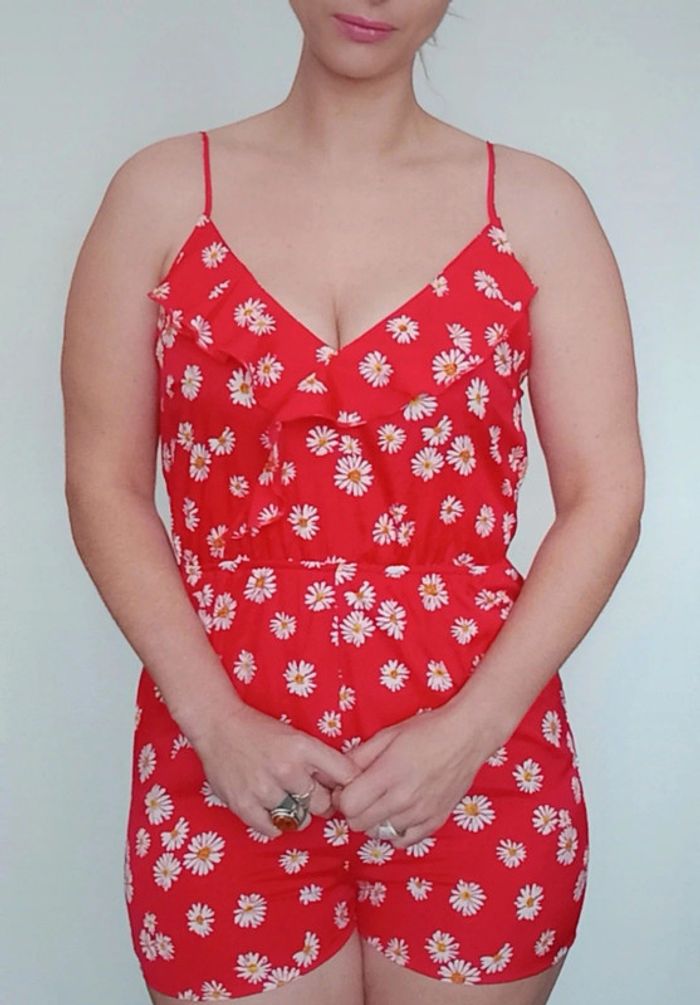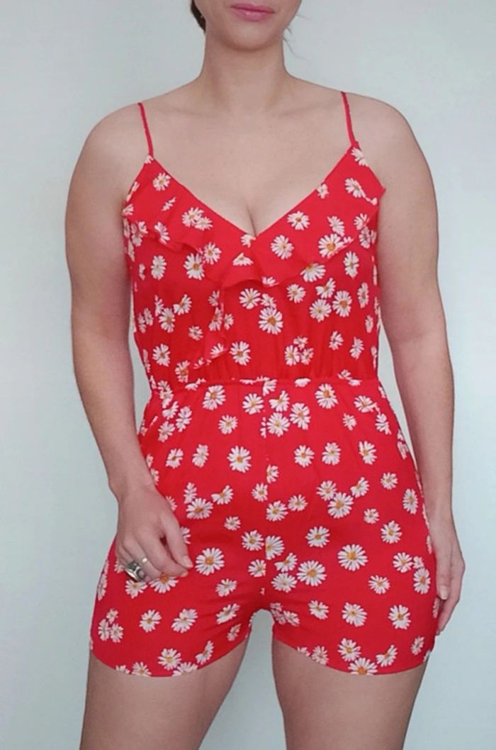 Combishort rouge fleurie décolletée taille 38 - photo numéro 3