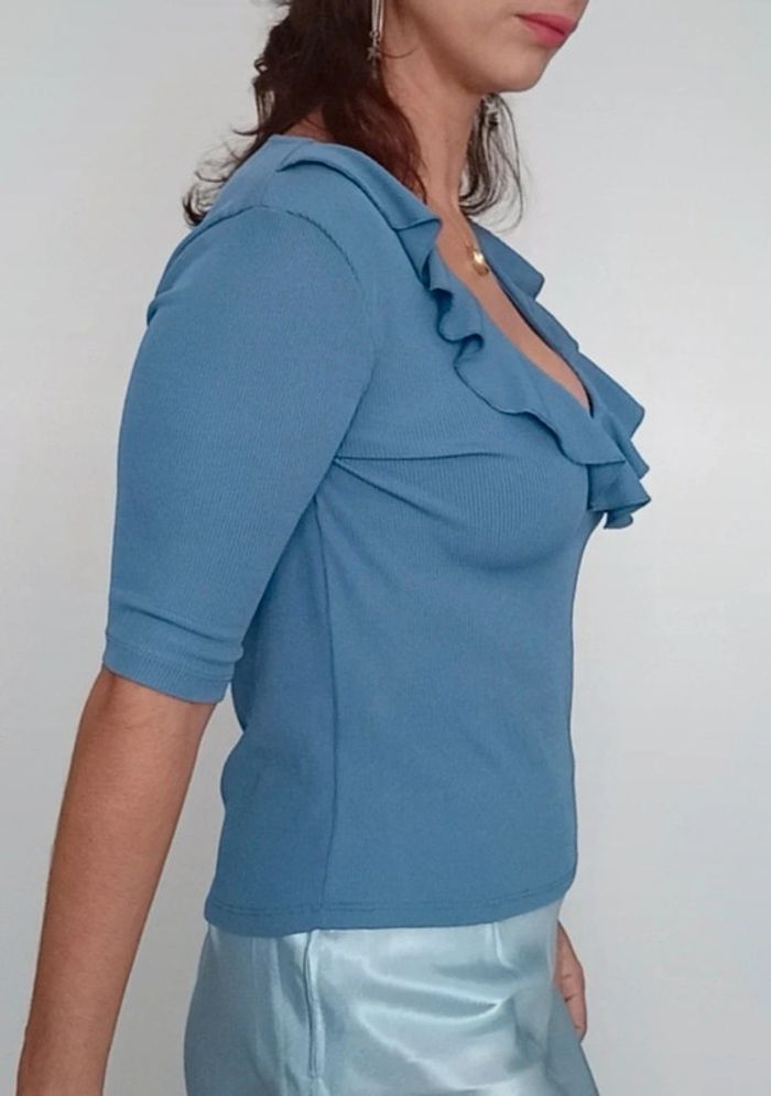 Haut décolleté volanté côtelé Stradivarius taille 40 - photo numéro 7