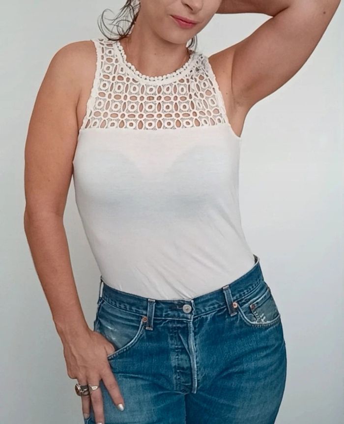 Top féminin blanc haut crochet taille 34 - photo numéro 5