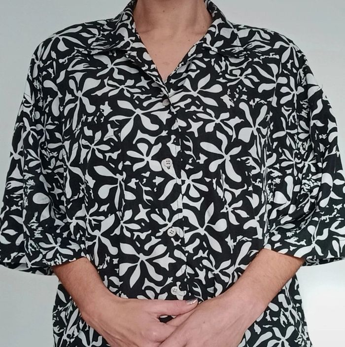 Chemise fleurie loose noire et blanche taille 42 - photo numéro 1