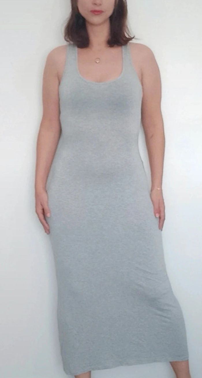 Regardez mes autres articles dans votre taille pour grouper les fdp #poupoupidoutu Robe sans manches décolleté arrondi féminin, longue et moulante, unie grise, basique idéale printemps été, taille unique jusqu au 40 #robelongue #robelonguemoulante #robelonguegrise #robeete #robelongueete #robefeminine #robecasualchic #robedecolletee #robesexy